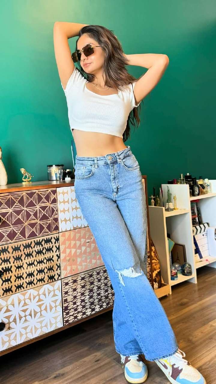 आप अनुष्का सेन के इस डेनिम लुक को भी रिक्रिएट कर सकती हैं। गर्मियों में डेनिम काफी ज्यादा कूल लुक देते हैं।