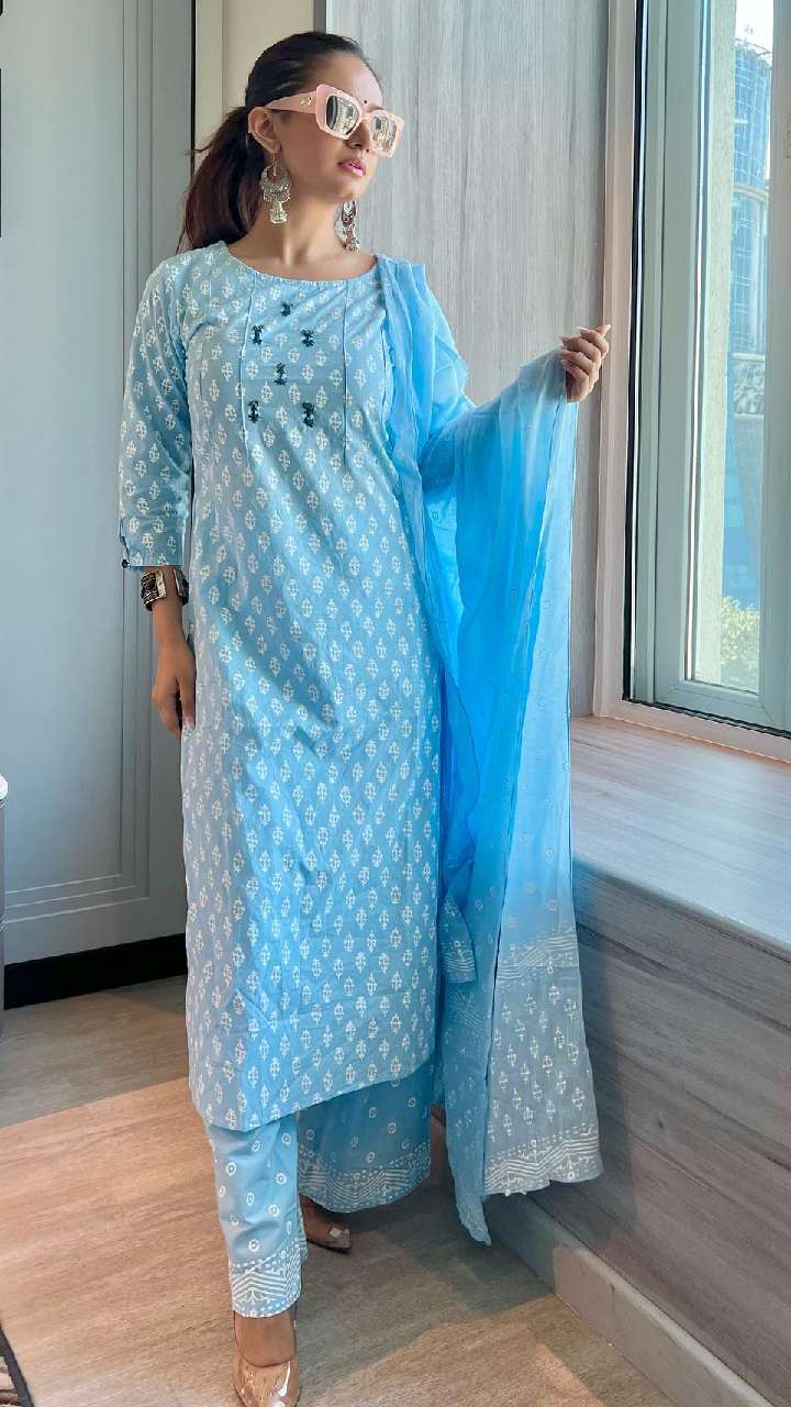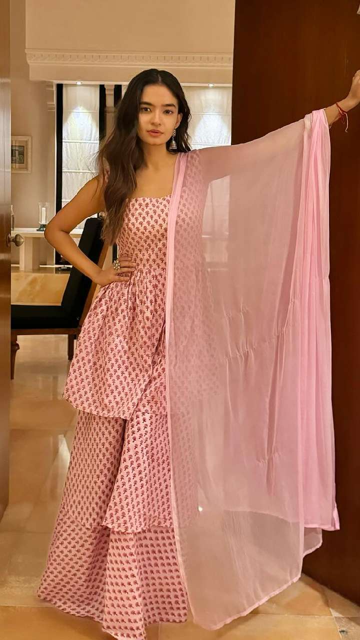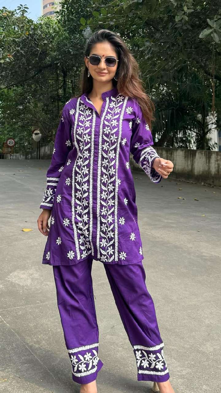 गर्मियों में चिकनकारी सूट काफी ट्रेंड में रहते हैं। डीवा का सिंपल सोबर चिकन वर्क शरारा सूट काफी प्रिटी लग रहा है।