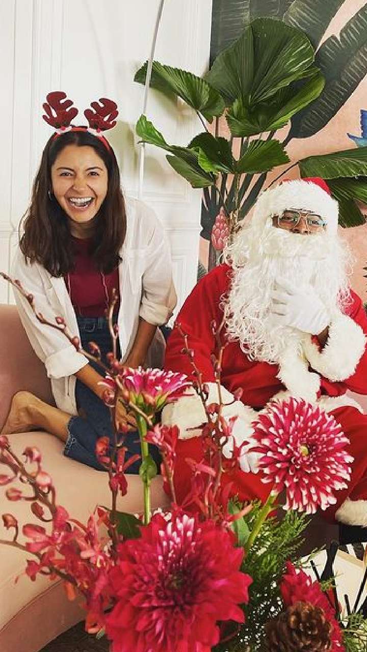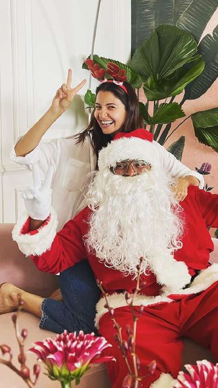 एक्ट्रेस अनुष्का शर्मा को इस तस्वीर में सेंटा क्लोज के साथ एंजॉय करते देखा जा सकता हैं।