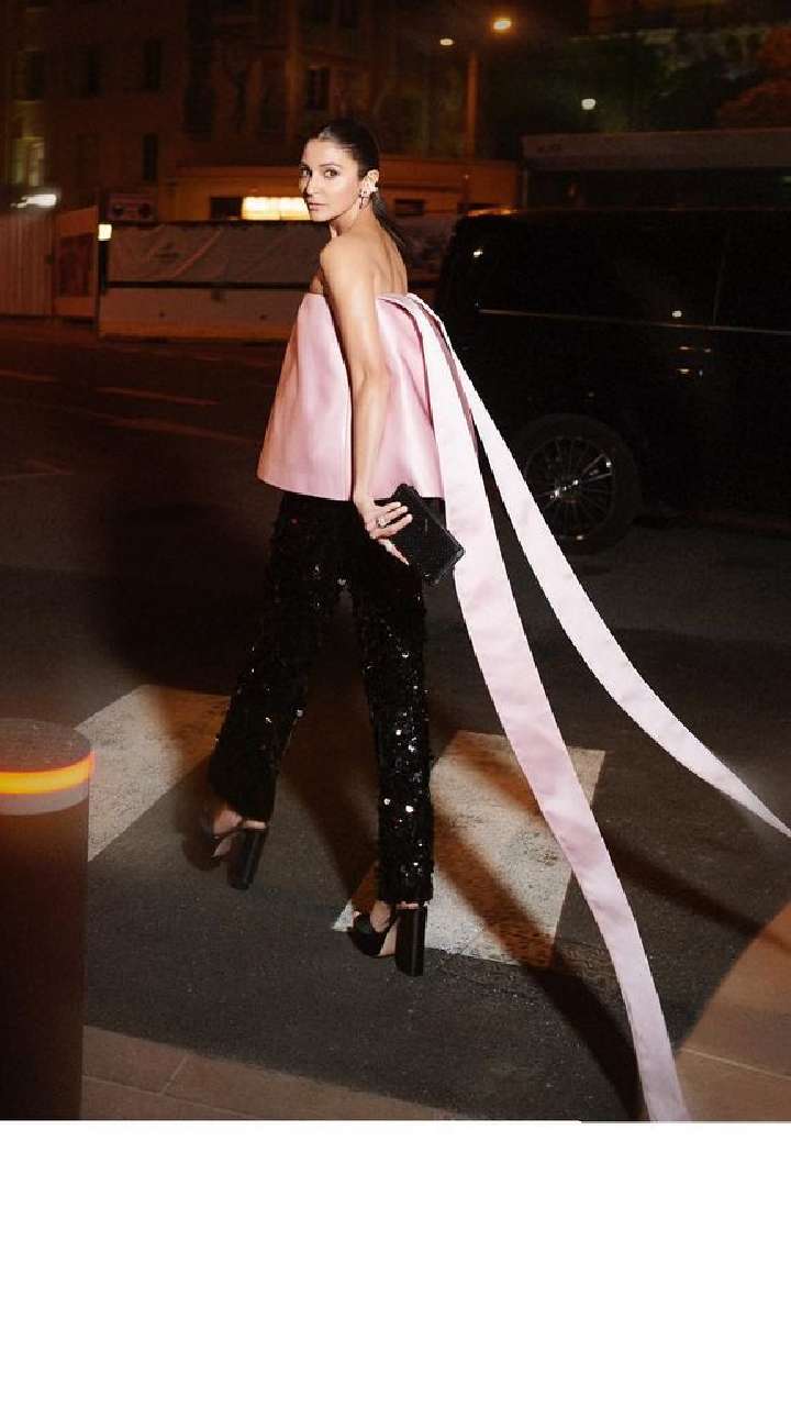 रेड कार्पेट के बाद अनुष्का ने कांस पार्टी में पिंक कलर के साटन टॉप और शिमरी ब्लैक बॉटम में कहर ढाया।