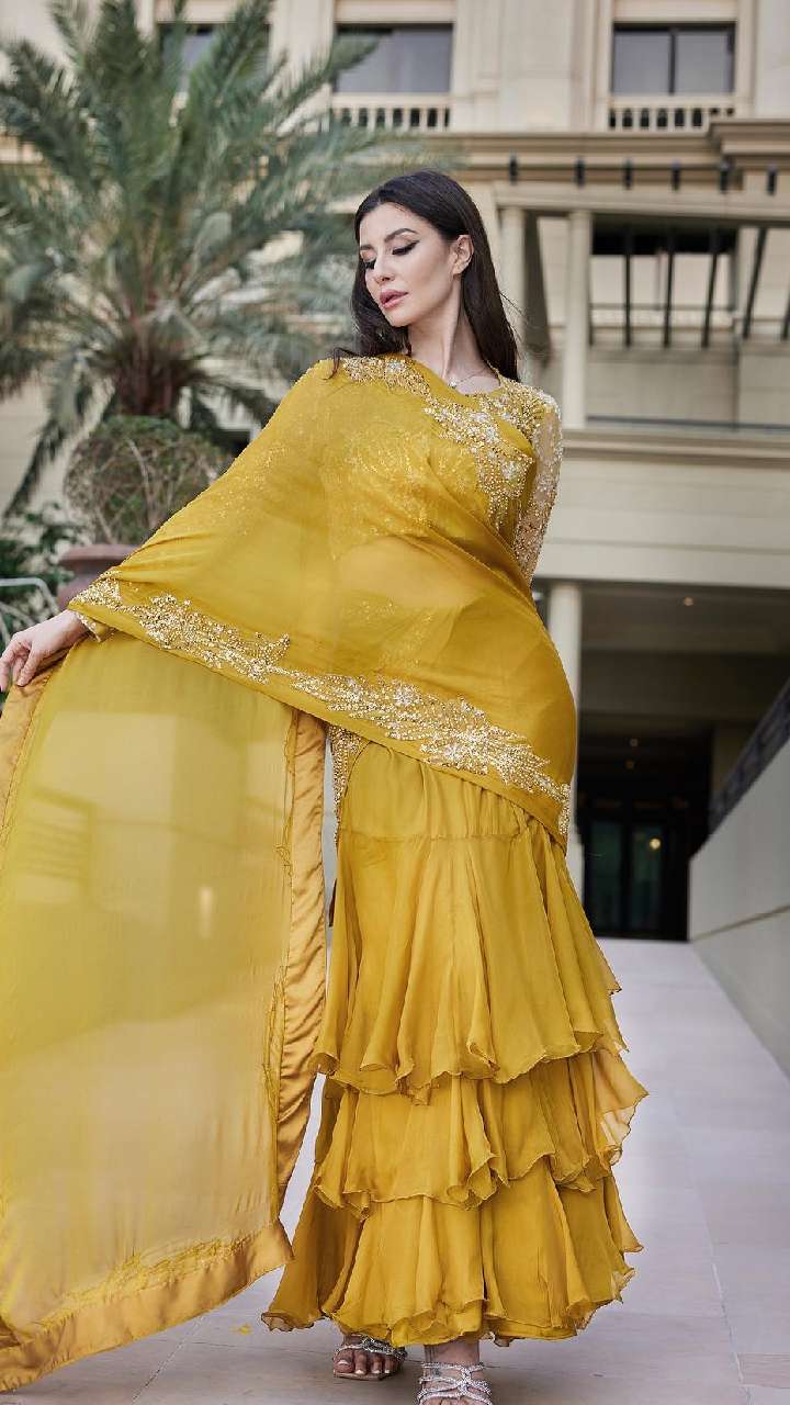 जॉर्जिया इस रफल साड़ी में हुस्न की मल्लिका लग रही हैं। एक्ट्रेस अपने इस लुक से फैंस के दिलों को धड़का रही हैं।