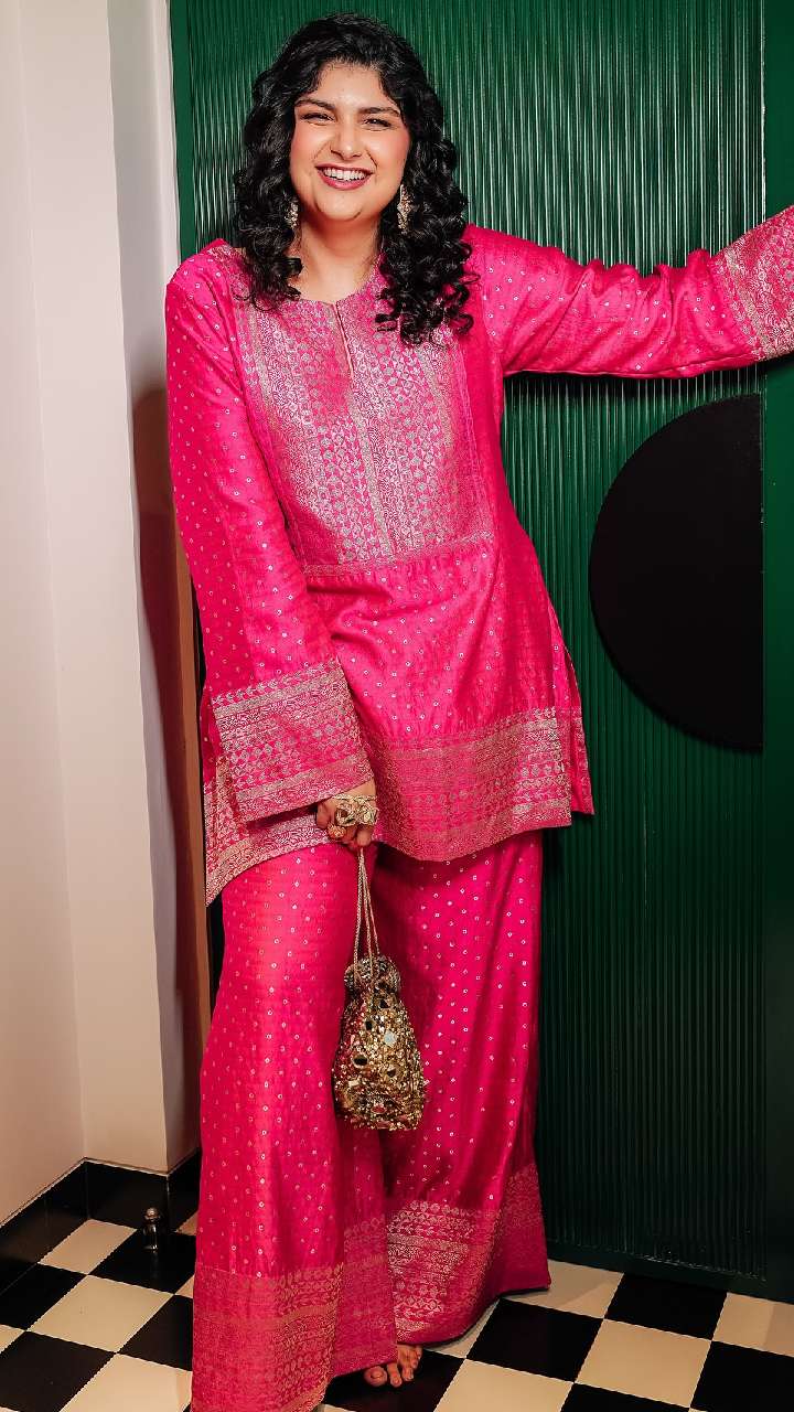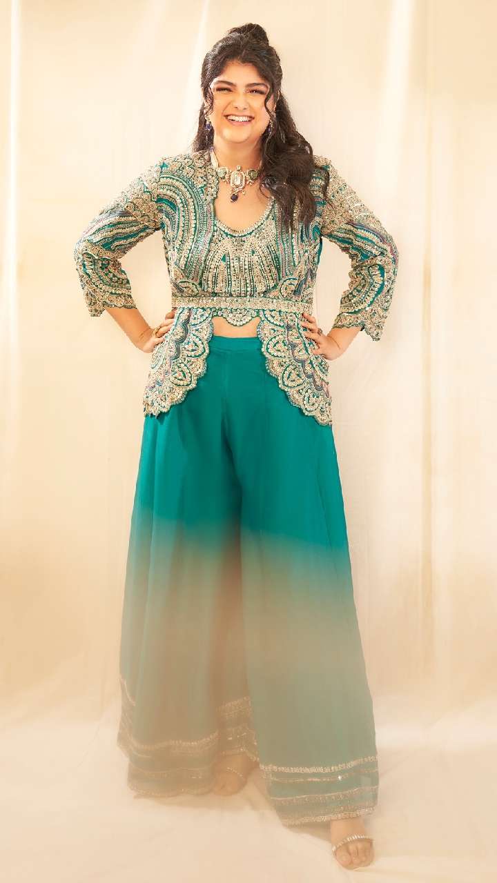 ग्रीन कलर के को-ऑर्ड सेट भी नई दुल्हन ऑप्शन में रख सकती हैं। इसके साथ एक्ट्रेस ने स्टाइलिश हेयरस्टाइल के साथ लुक कंप्लीट किया।