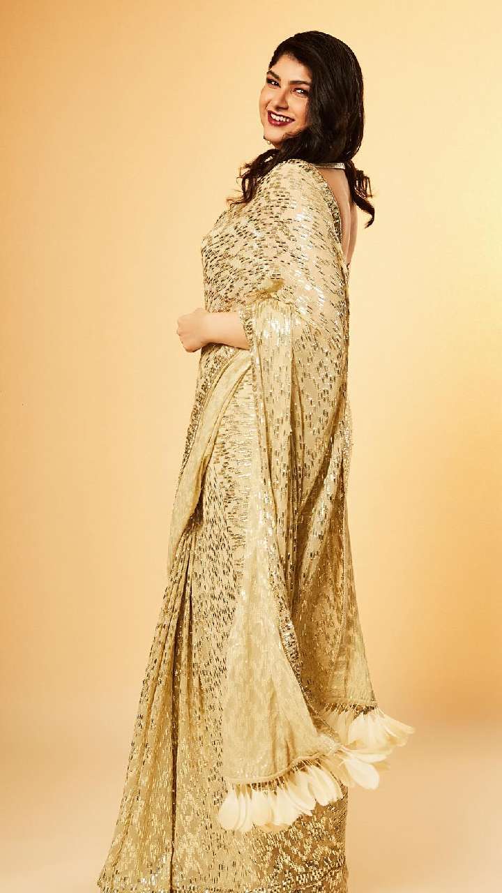 अर्जुन कपूर की बहन टिशू साड़ी में बला की खूबसूरत लग रही हैं। इस तरह की साड़ी नई दुल्हन पर खूब जचती हैं।