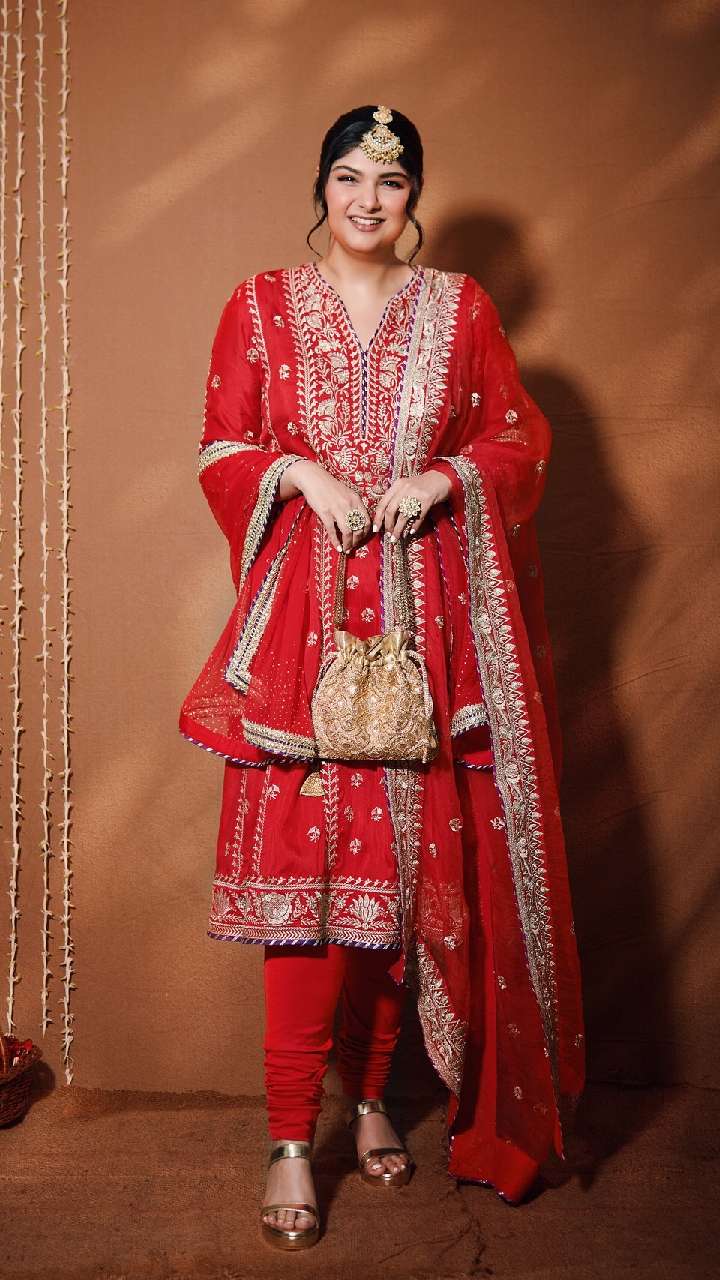 सावन में गॉर्जियस दिखने के लिए एक्ट्रेस के इस वी-नेक सूट लुक को जरूर रीक्रिएट करें। इसके साथ चांदबाली इयररिंग्स कैरी करें।