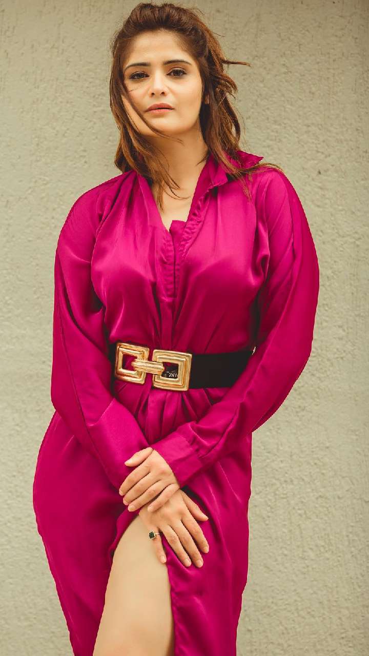 ऐसे साटन कॉलर गाउन आपके लुक को स्टाइलिश बनाते हैं। एक्ट्रेस ने इसके साथ बेल्ट पेयर की हुई है।