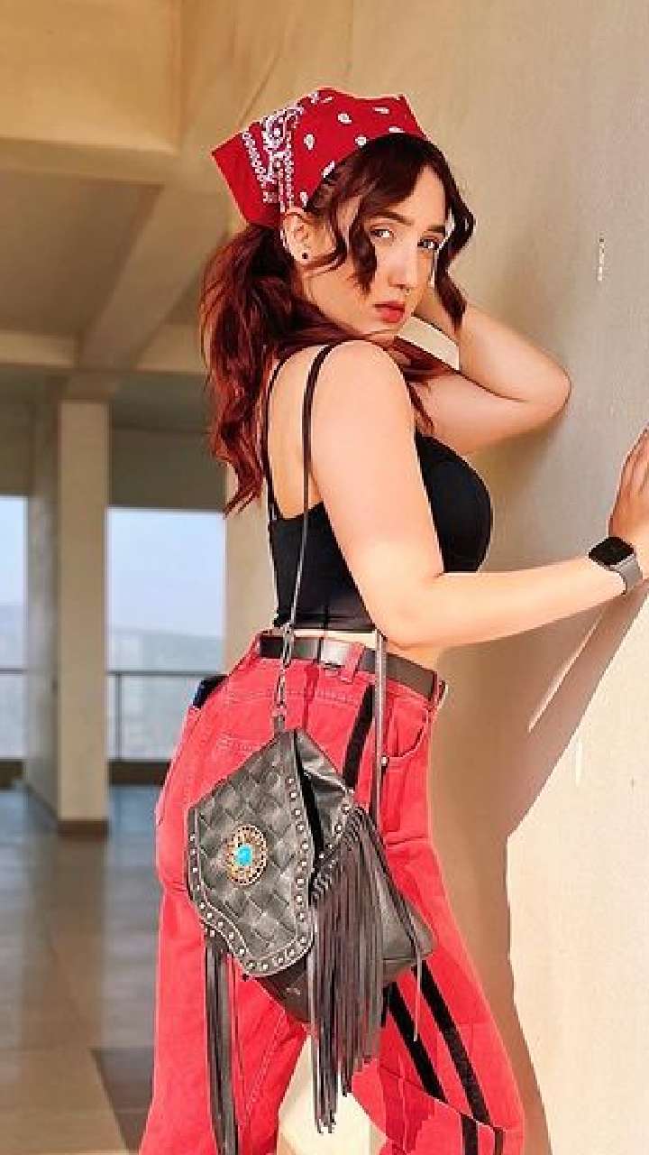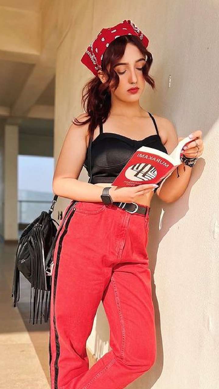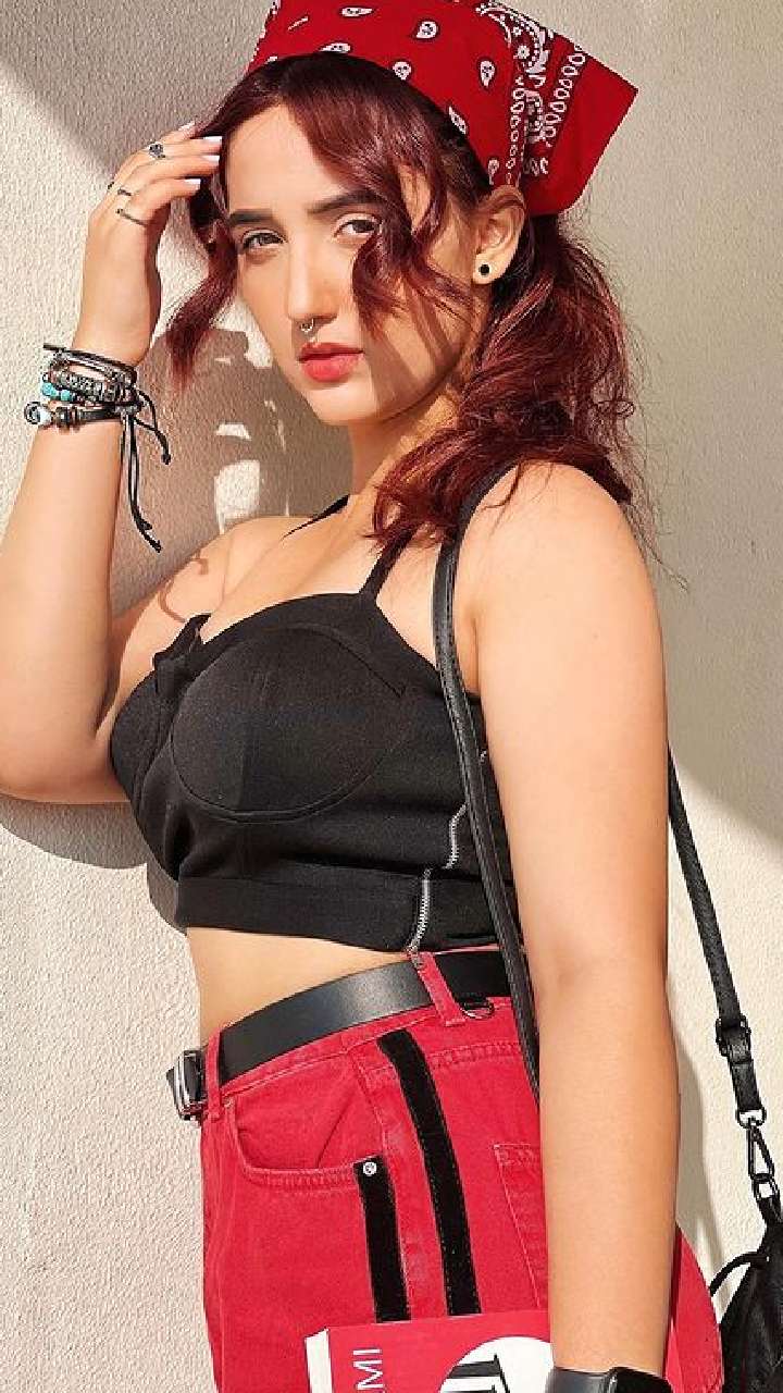 एक्ट्रेस इस ब्लैक कलर के क्रॉप टॉप, पिंक डेनिम संग सिर और स्कार्फ और सेप्टम में बेहद स्टाइलिश दिख रही हैं।