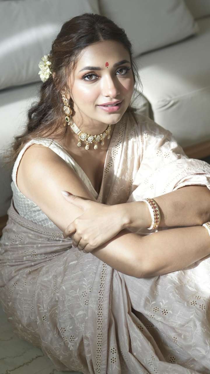 अभिनेत्री का फ्रंट कट सूट शानदार लुक दे रहा है। यंग गर्ल्स ऐसे सूट त्योहारों पर पहनकर जलवा दिखा सकती हैं। इसके साथ मिनिमल मेकअप टच दिया जा सकता है।