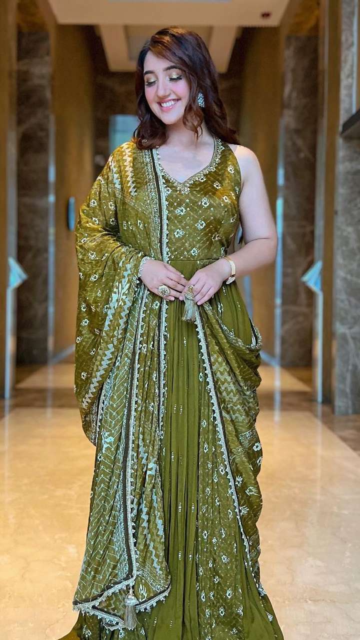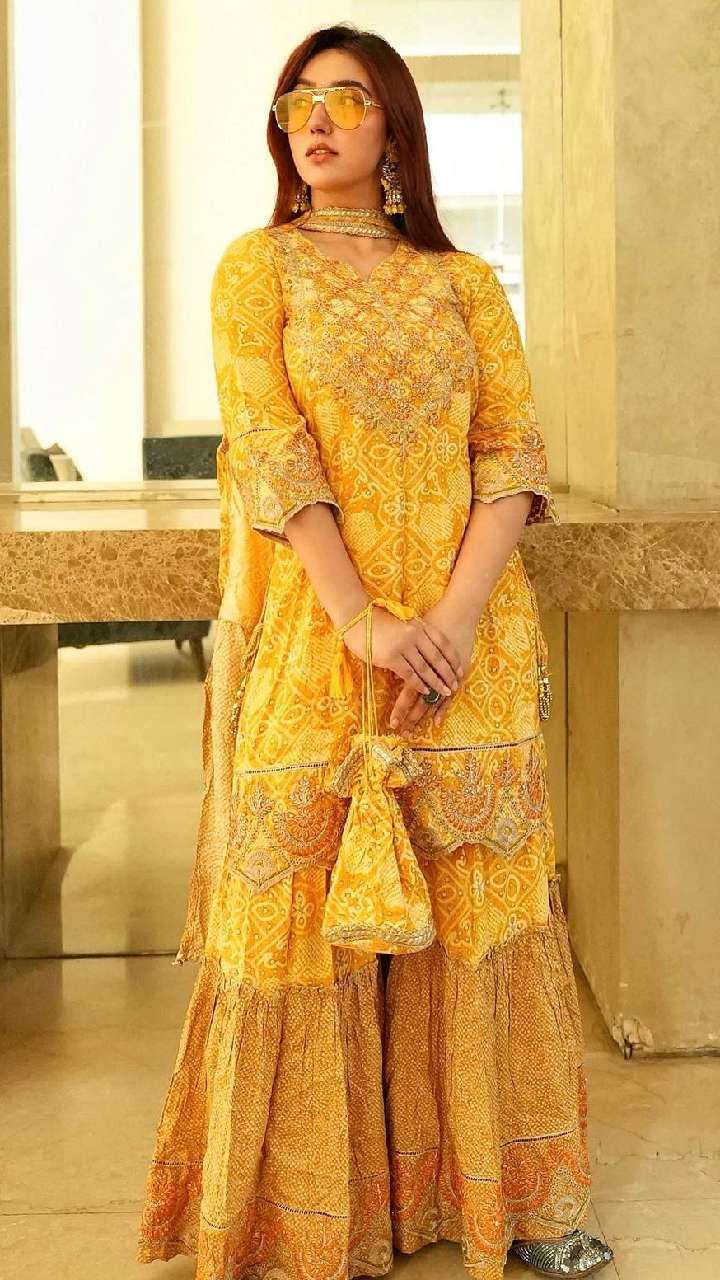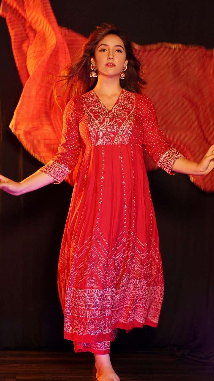 अशनूर कौर जैसे चुंदरी प्रिंट अनारकली हैवी फ्लेयर सूट में आप एकदम पटाखा कुड़ी नजर आएंगी। इस प्रिंट पूजा में बेस्ट रहते हैं।