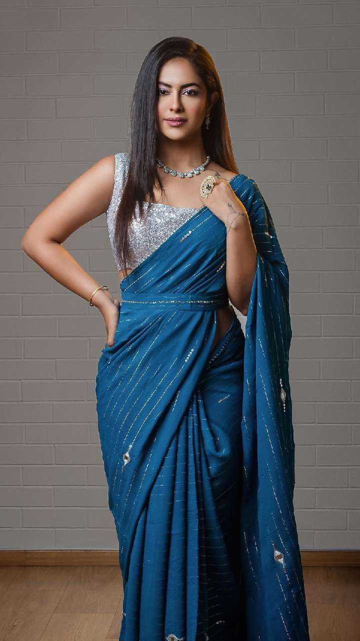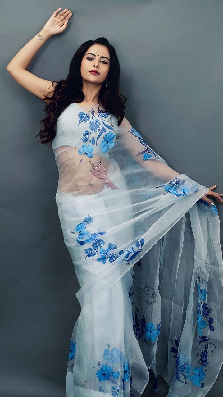 डीप वी नेक ब्लाउज साड़ी के संग काफी बोल्ड लुक देते हैं। अविका ने प्लेन साड़ी के साथ फुल स्लीव्स डीप वी नेक ब्लाउज से खुद को स्मार्ट लुक दिया है।