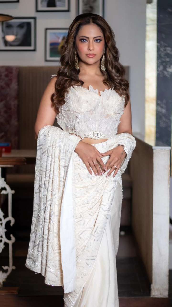 हाल में डीवा ने व्हाइट कलर की साड़ी संग ऑफ शोल्डर ब्लाउज कैरी किया है। जो कि बेहद स्टाइलिश लुक दे रहा है।