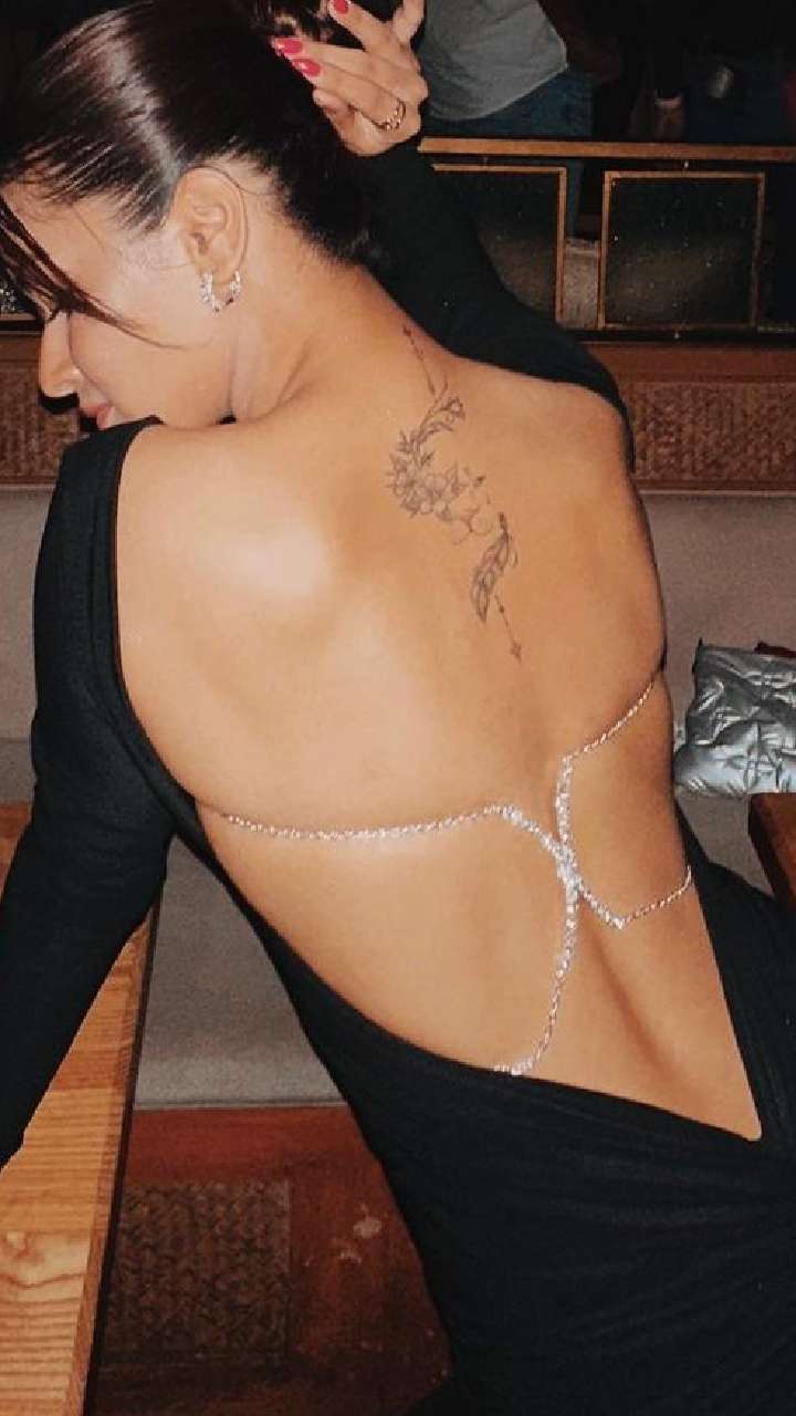 डीवा का इस तस्वीर में बैक पर टैटू फ्लॉन्ट होते देखा जा सकता है।