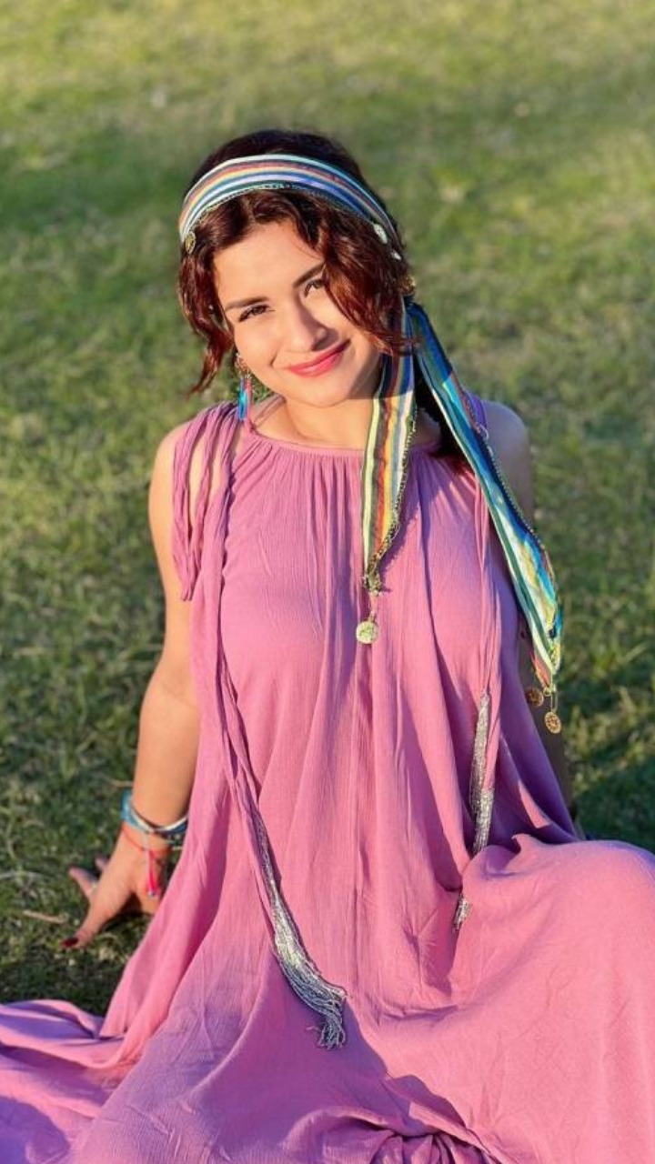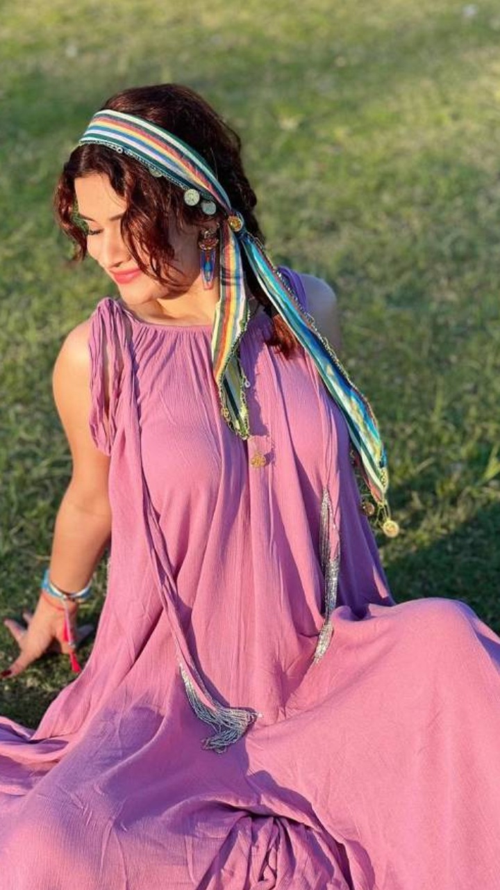 अलादीन शो की यासमीन ने तस्वीर में पिंक कलर का स्लीवलेस वन पीस फुल लेंथ गाउन पहना हुआ हैं।