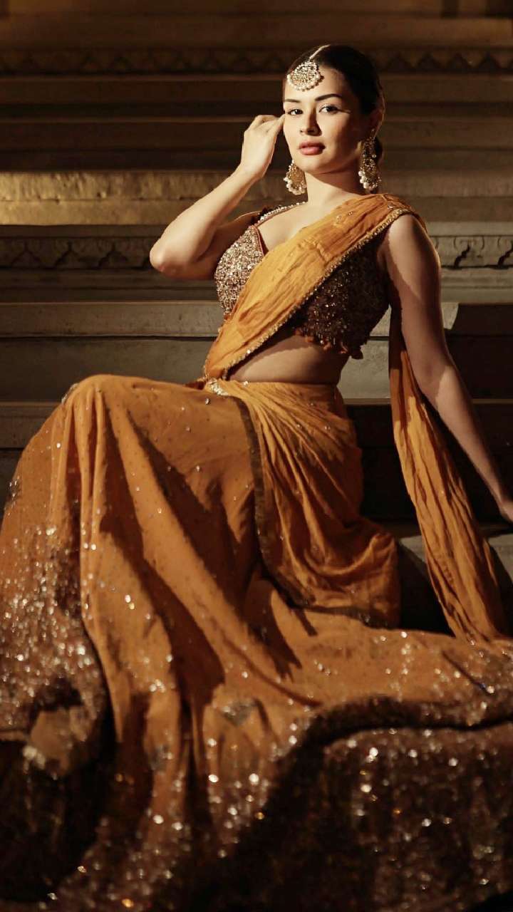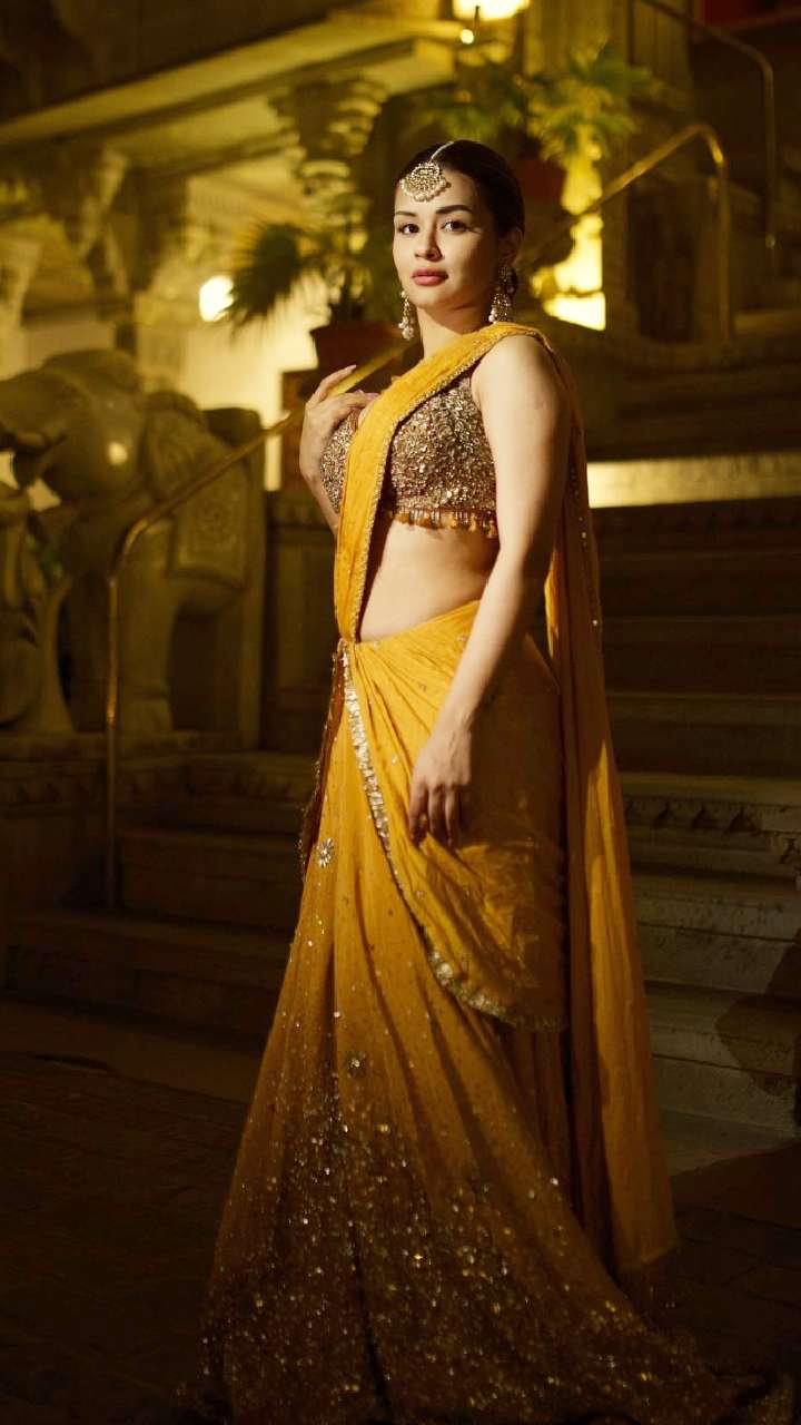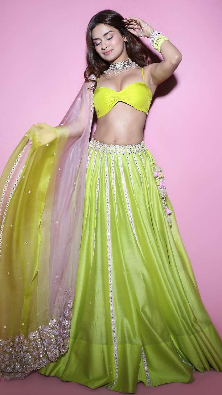 एक्ट्रेस ने इंस्टाग्राम पर मस्टर्ड कलर के सिल्वर वर्क लहंगे में माथे पर टीका लगाए अपना गॉर्जियस लुक शेयर किया है। जो आपके ईद के लिए बेस्ट है।