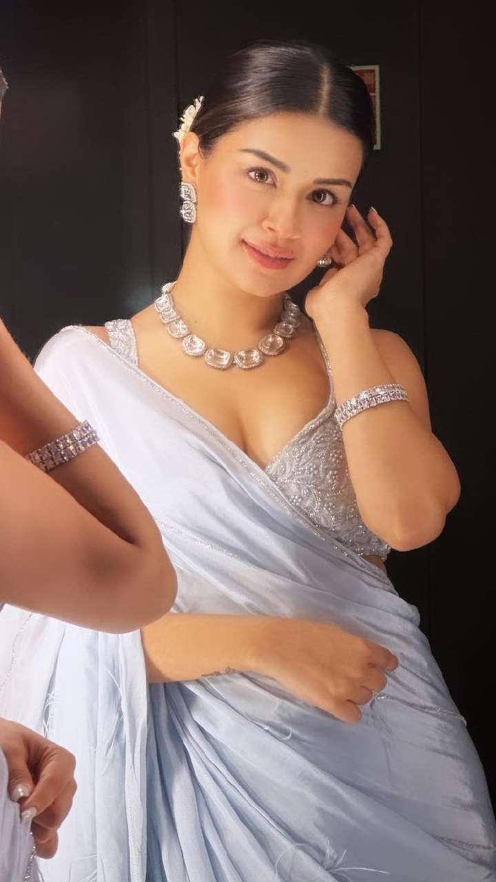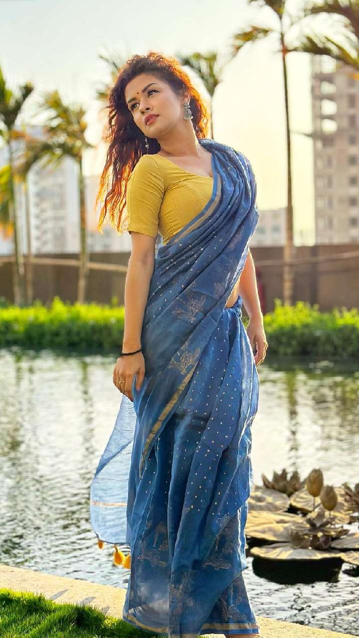अवनीत का ब्लू रफल साड़ी साटन प्लेन ब्लाउज लुक काफी अट्रैक्टिव लग रहा है। यंग गर्ल्स इसे जरुर ट्राई करें।