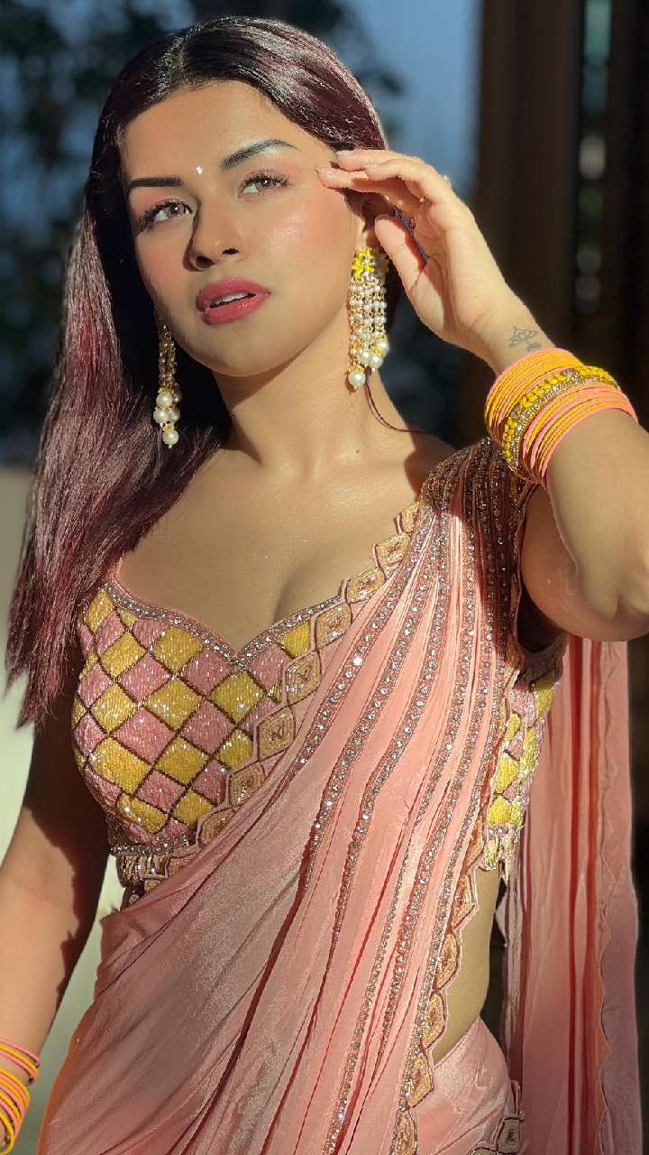 अवनीत पीच कलर की साटन नग वर्क साड़ी मल्टीकलर सेक्विन ब्लाउज में हुस्न की मल्लिका लग रही हैं। एक्ट्रेस साड़ी में काफी ग्लैमरस दिखती हैं।