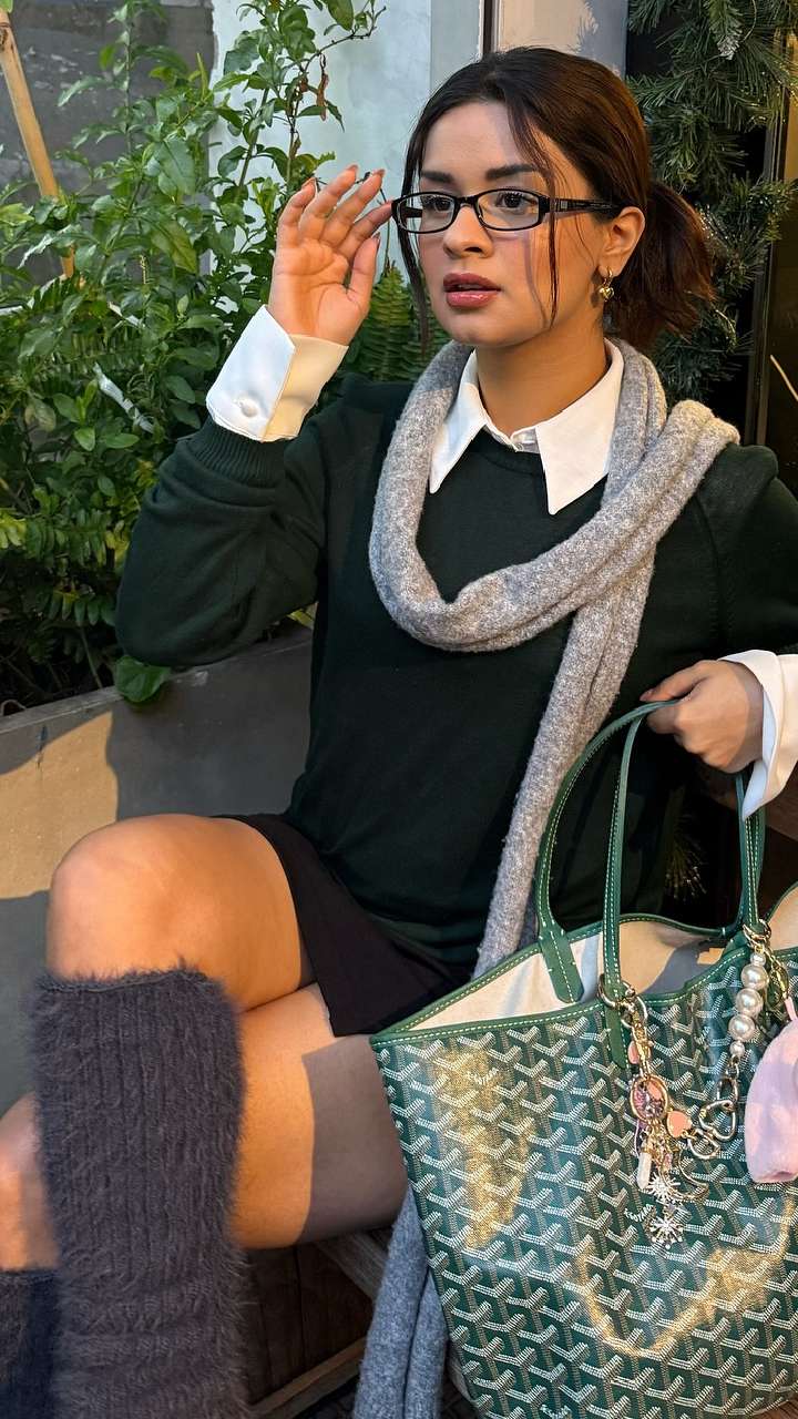 अभिनेत्री इस आउटफिट में बेहद खूबसूरत लग रही हैं। आप इस आउटफिट को लॉन्ग कोट के साथ स्टाइल करके अट्रैक्टिव लुक ले सकती हैं।