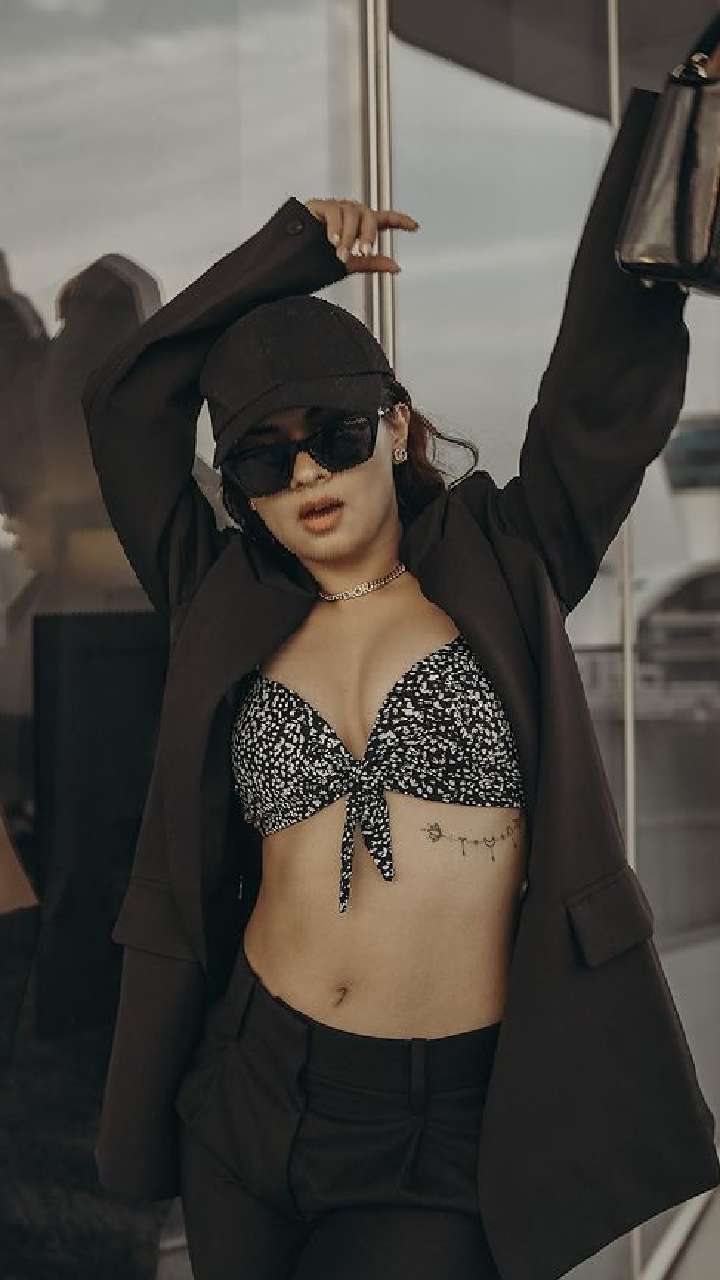 डीवा इस ब्लैक ऑउटफिट में बेहद सिजलिंग पोज दे रही हैं।