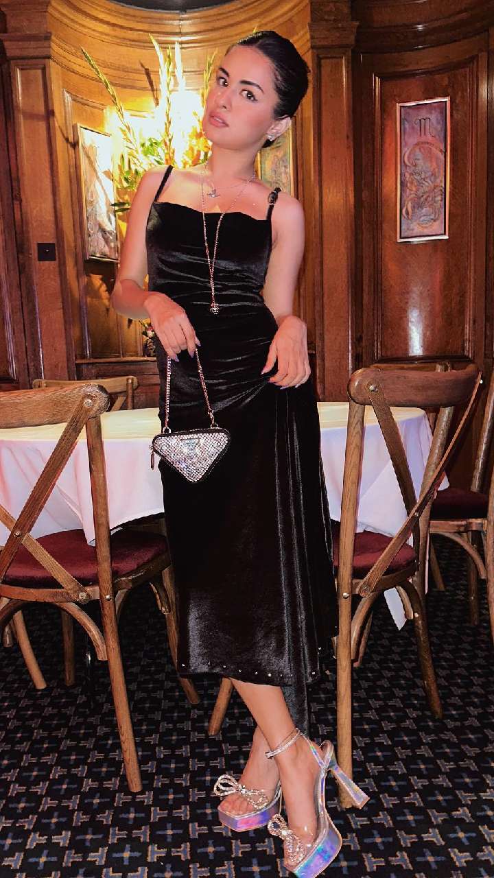 अवनीत इस ऑल ब्लैक बॉडी हगिंग स्ट्रैपी गाउन में काफी ग्लैमरस अंदाज में नजर आ रही हैं। उनका ये लुक कॉकटेल और बर्थडे पार्टीज के लिए बेस्ट है।