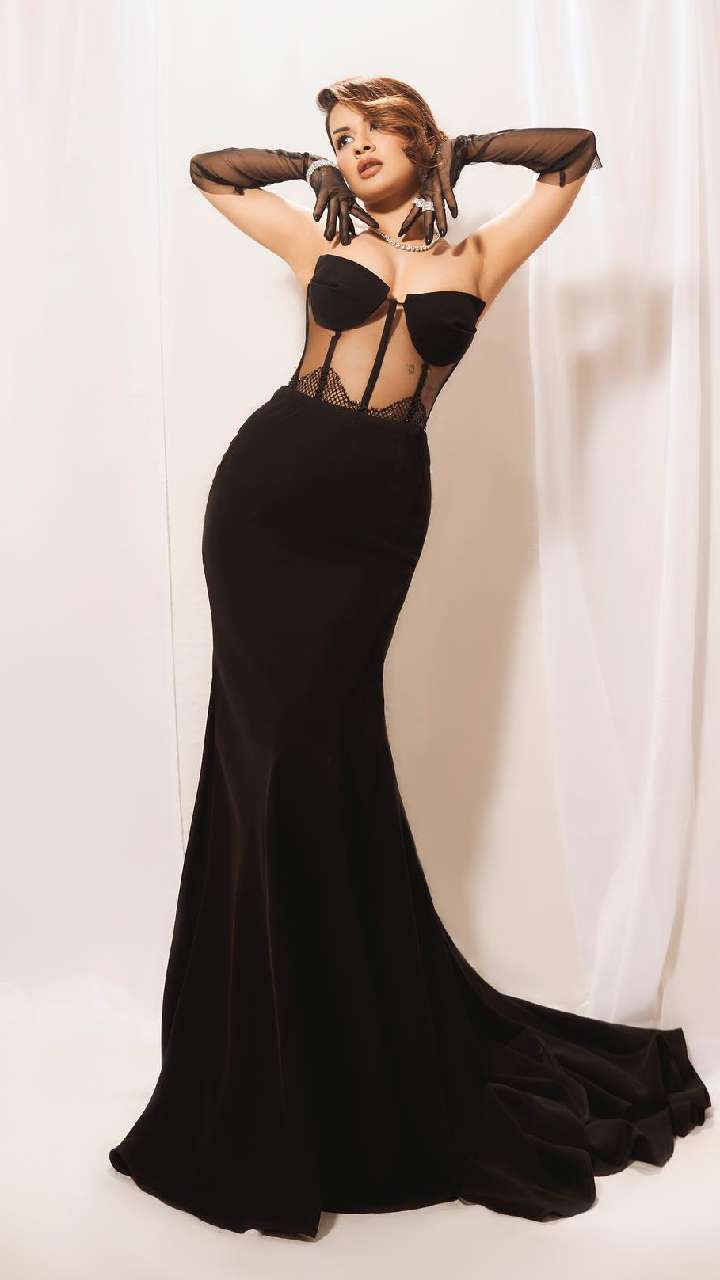 इस प्लेट्स ब्लैक कलर के बॉडी हगिंग गाउन में अवनीत का सिजलिंग अंदाज फैंस के दिलों को घायल कर रहा है।