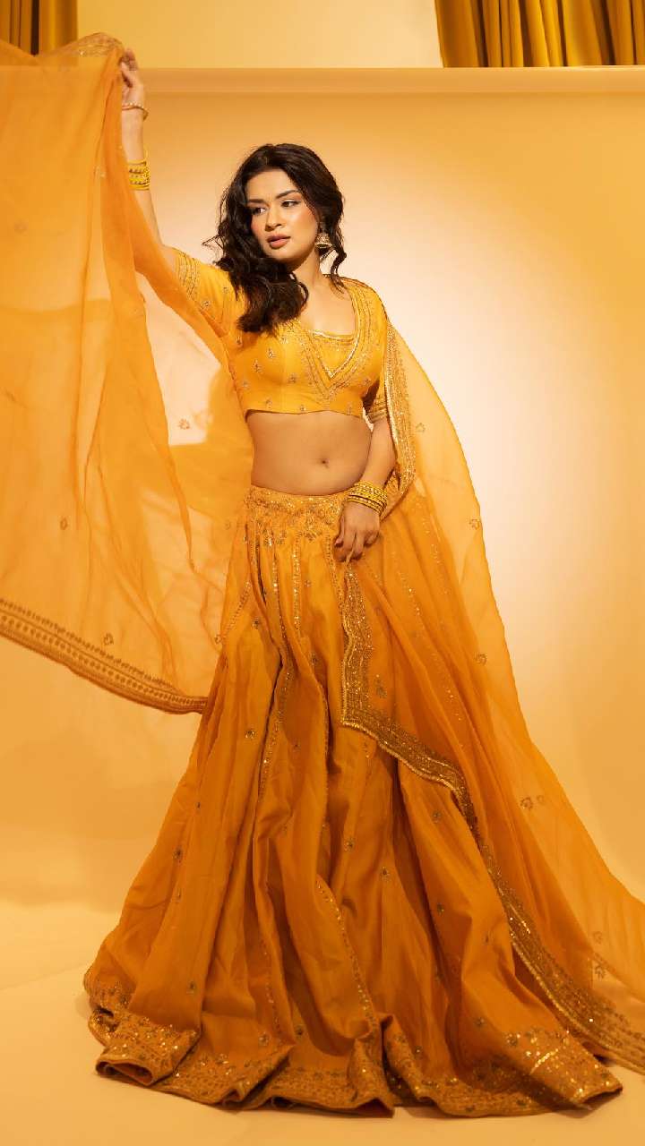 येलो कलर के इस लहंगे में अवनीत कौर बहुत सुंदर लग रहीं हैं। आप अवनीत के इस लुक को हल्दी फंक्शन में कैरी कर सकती हैं।