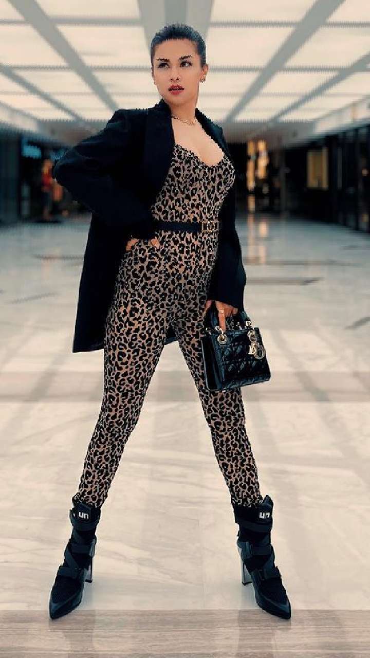 लेपर्ड प्रिंट जम्पसूट के साथ एक्ट्रेस ने ब्लैक जैकेट कैरी की हैं, अवनीत का यह लुक उन्हें बॉस लेडी बना रहा है।