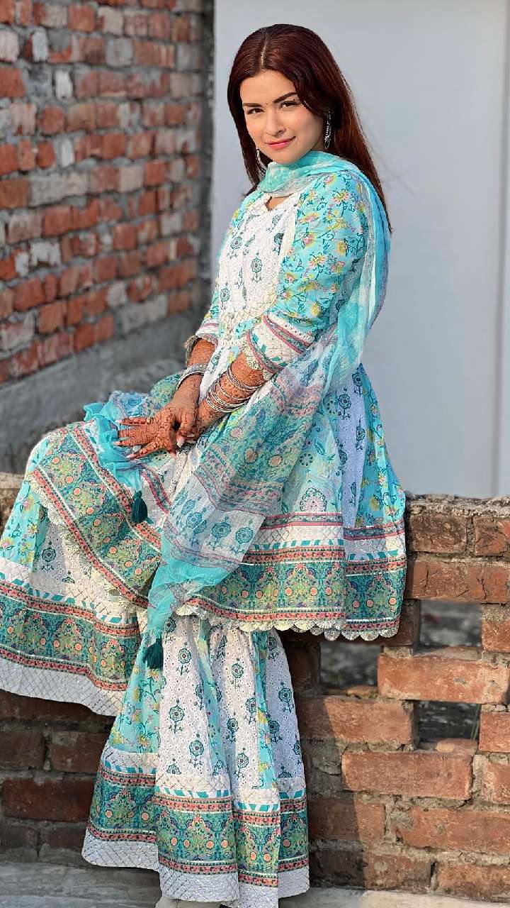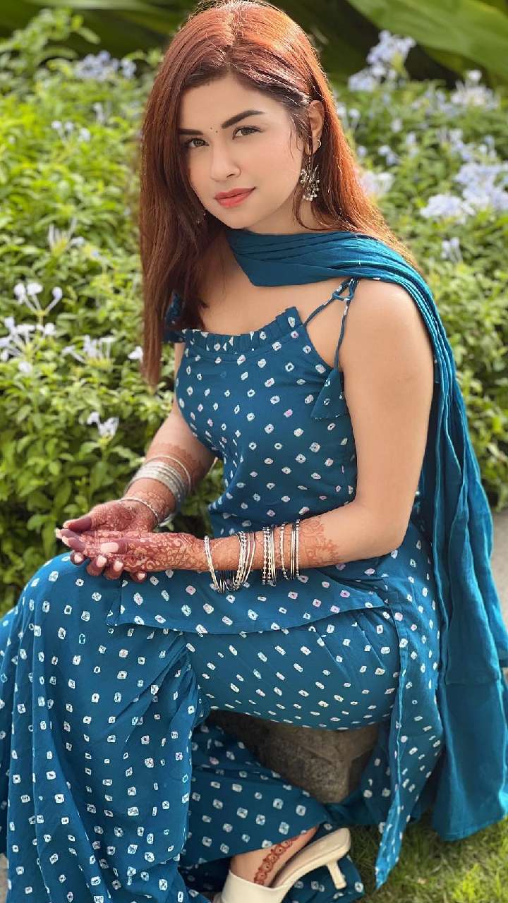अवनीत कौर ब्लू कलर के चुंदरी प्रिंट शरारा सूट में ग्लैमरस अंदाज में नजर आ रही हैं। ये लुक वेडिंग के लिए बेस्ट है।