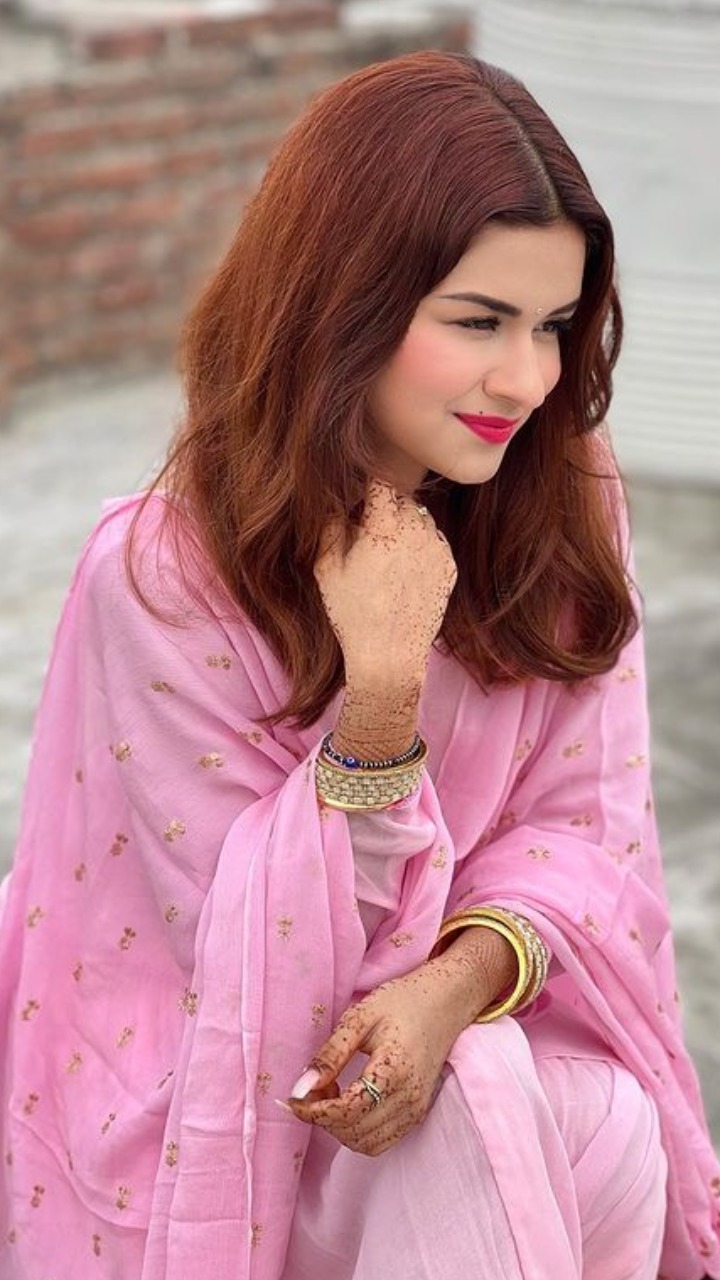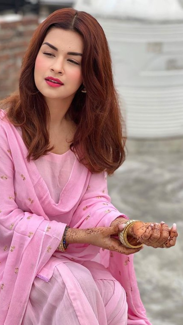 अवनीत ने अपने इस लुक को महंदी और खूबसूरत चुड़ीयो के साथ कंप्लीट किया हैं।