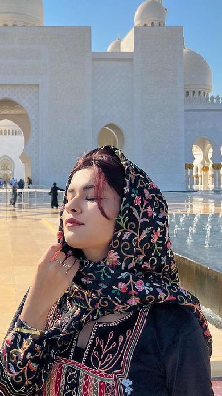 डीवा ने ब्लैक सूट में अपनी ये तस्वीरें अबू धाबी की एक मस्जिद से शेयर की हैं।