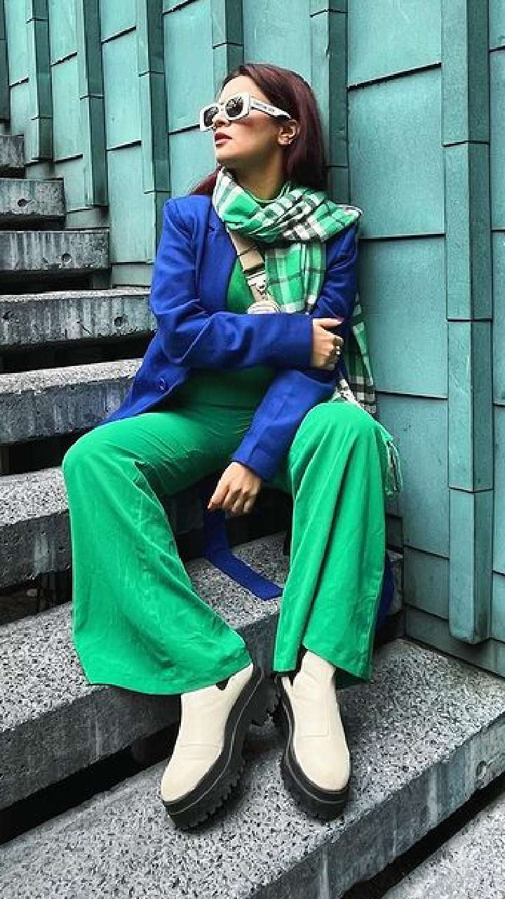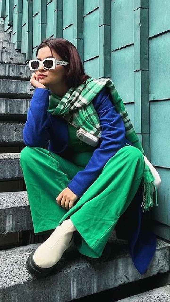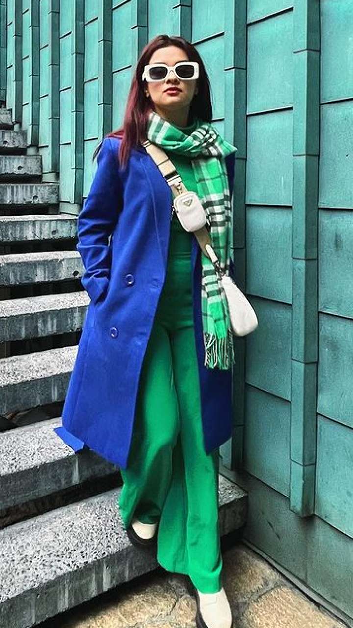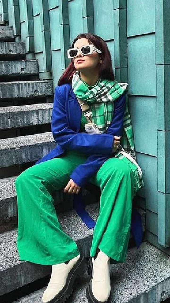 ग्रीन प्लाजो, वूलन टॉप, चेक प्रिंट मफलर संग आँखों में चश्मा लगाए अवनीत बेहद कूल नजर आ रही हैं।