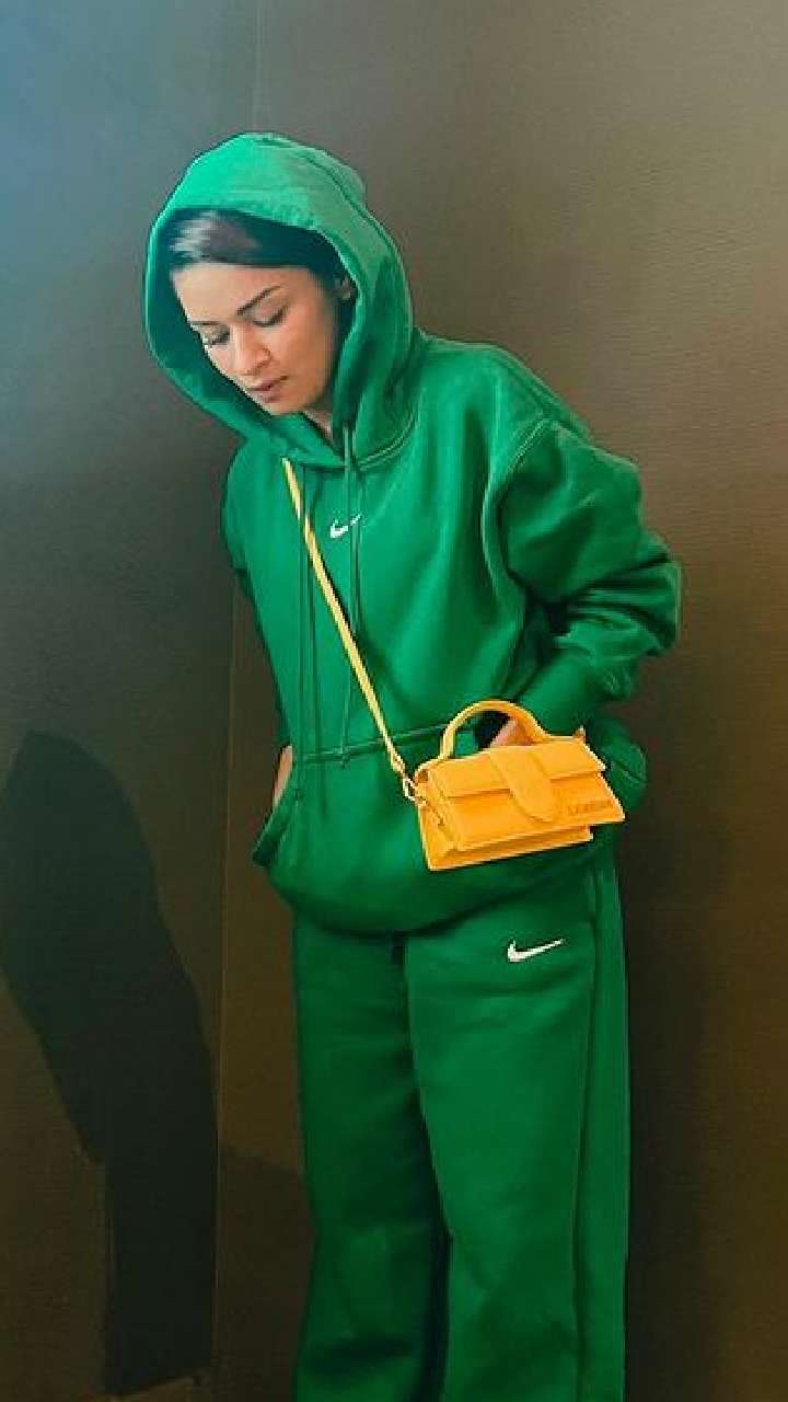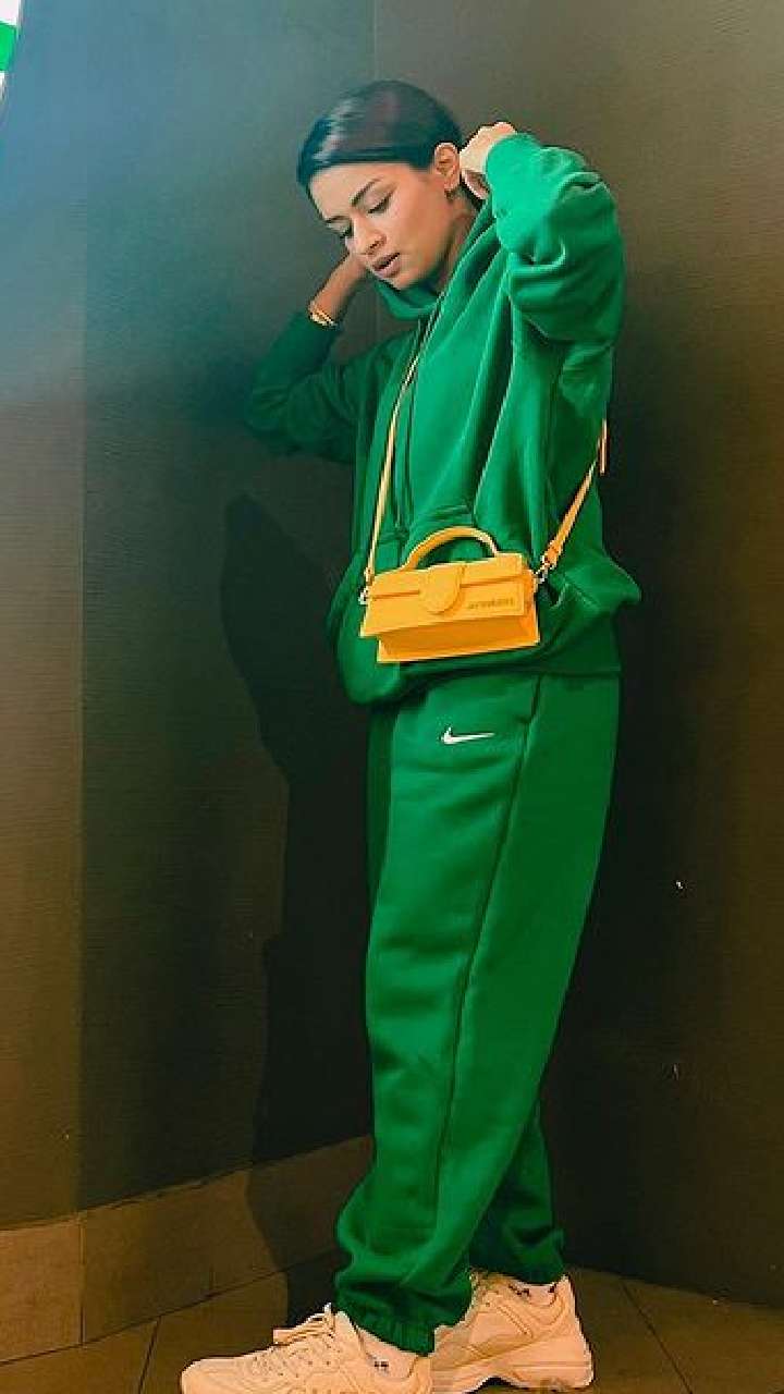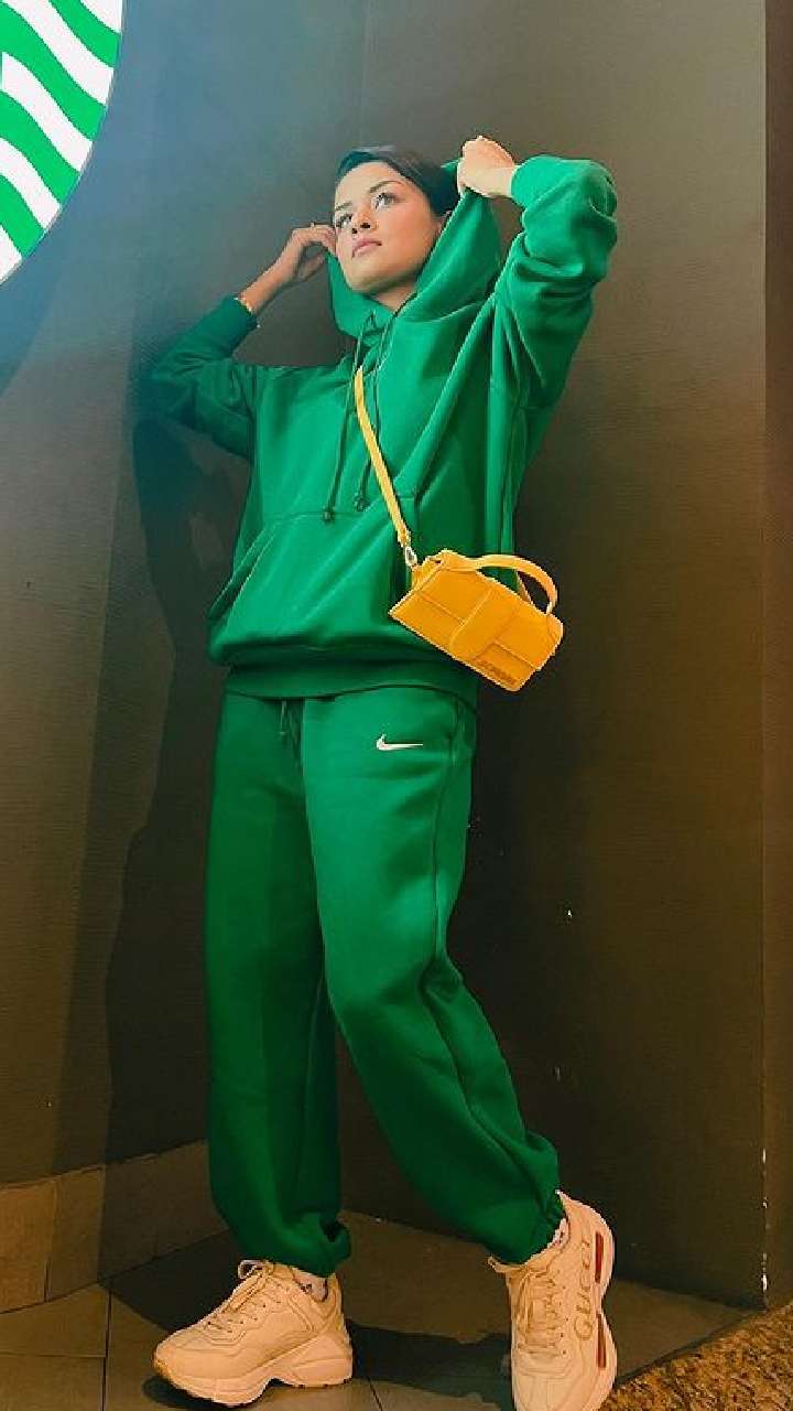 अवनीत कौर का ग्रीन हुडी और पजामा स्टाइलिश के साथ ही विंटर पर कैरी करने के लिए शानदार हैं।