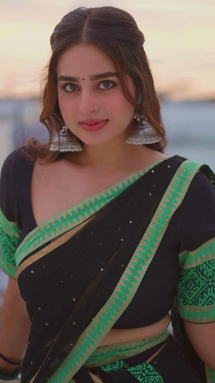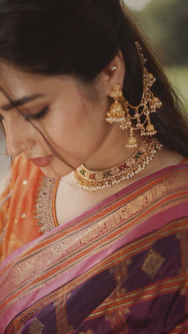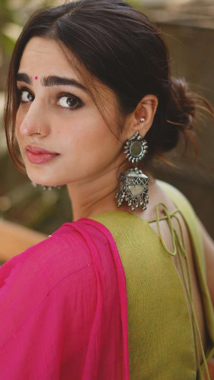 एक्ट्रेस ने ऑक्सीडाइज्ड डिजाइनर झुमके को स्टाइलिश साड़ी के पहना है, जो आपके ट्रेडिशनल आउटफिट्स में एस्थेटिक लुक देगा। साथ ही, आपको मेहफिल की स्पोर्ट लाइट बनाएगा।