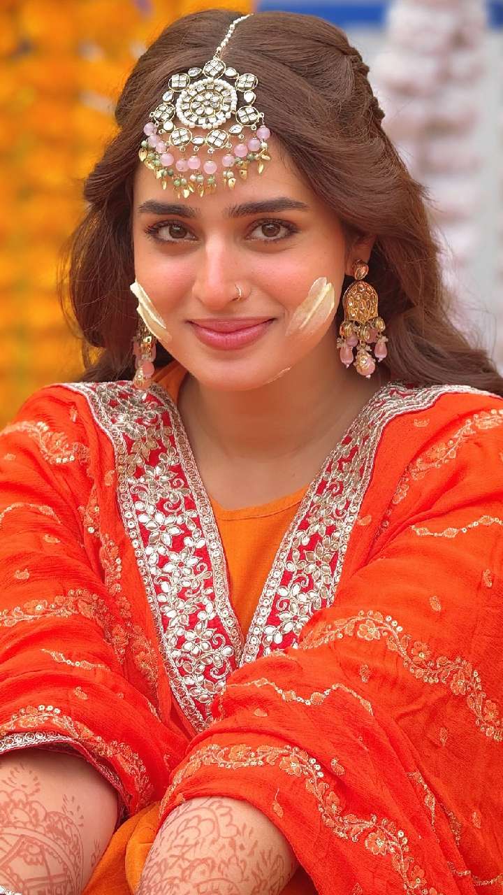 हेयर चेन इयररिंग में एक्ट्रेस बेहद खूबसूरत लग रही हैं। Ayesha ने हाफ टाई हेयर स्टाइल के साथ इयररिंग को स्टाइल किया है। आप भी इसी तरह से स्टाइल करके अपने लहंगे या साड़ी लुक को गॉर्जियस बना सकती हैं।