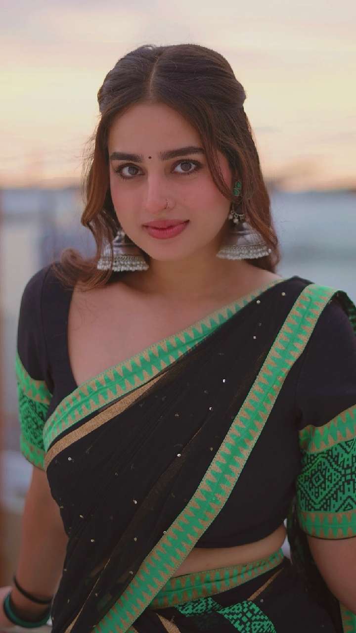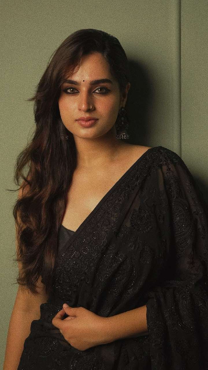 इस ब्लैक कलर की कॉटन साड़ी में आयशा खान का लुक शानदार लग रहा है। आप साड़ी के अलावा सूट डिजाइन से भी इंस्पिरेशन ले सकती हैं।