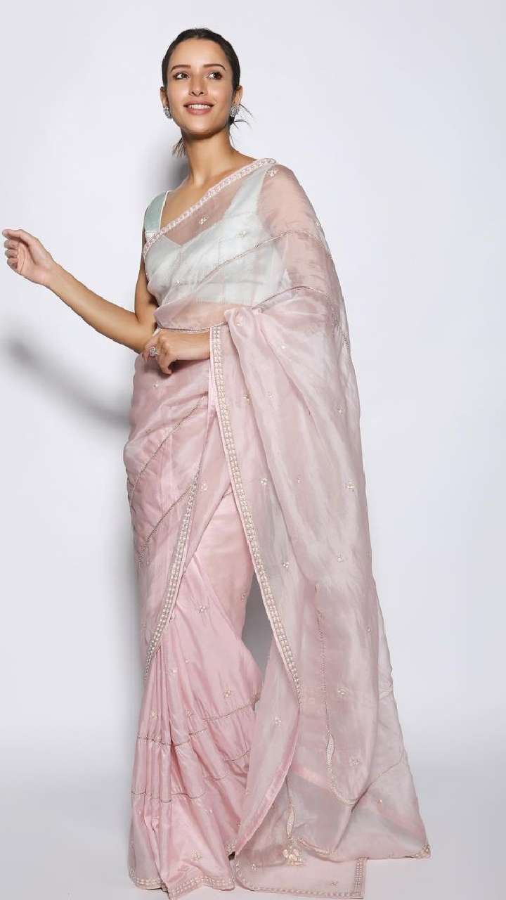 फिल्म एनिमल से पॉपुलैरिटी हासिल करने वाली एक्ट्रेस तृप्ति डिमरी आज नेशनल क्रश हैं। तृप्ति पिंक टिश्यू साड़ी में सुंदर लग रहीं हैं।