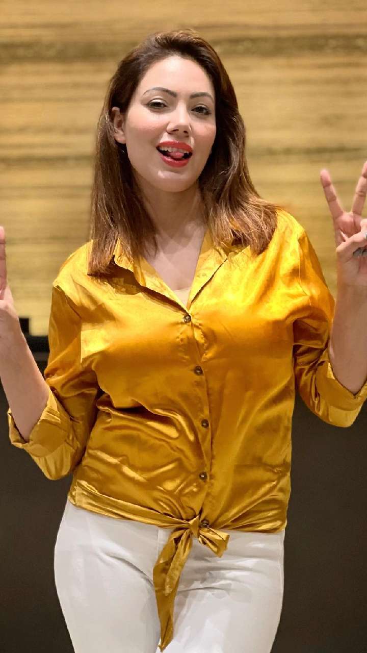 सेटिन शर्ट पार्टी लुक या फिर ऑफिस पार्टी लुक हर मौके पर शानदार लुक देती है। गोल्डन शर्ट को एक्ट्रेस ने व्हाइट पैंट के साथ कैरी किया है।