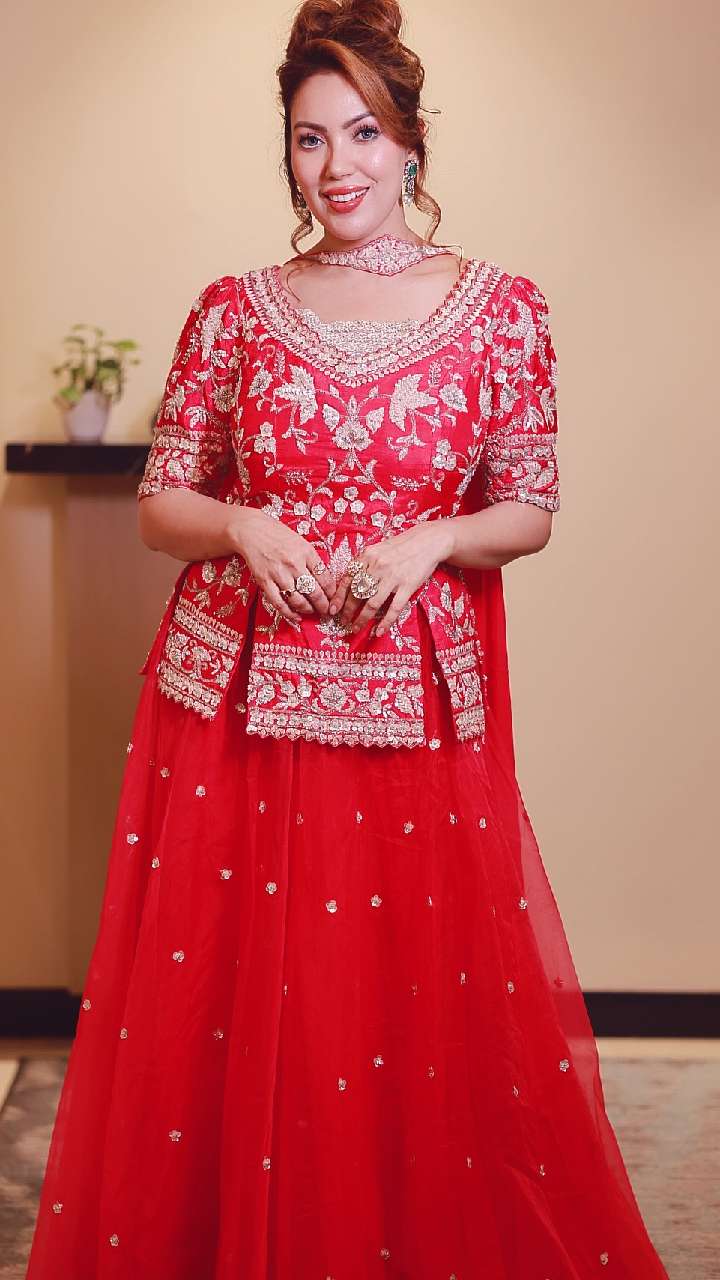 अभिनेत्री ने हाल में इंस्टाग्राम पर रेड कलर की नेटिड स्कर्ट सिल्वर वर्क लांग चोली स्लीक दुपट्टे में अपना लेटेस्ट लुक शेयर किया है। डीवा का ये रेड लहंगा गॉर्जियस लुक दे रहा है।