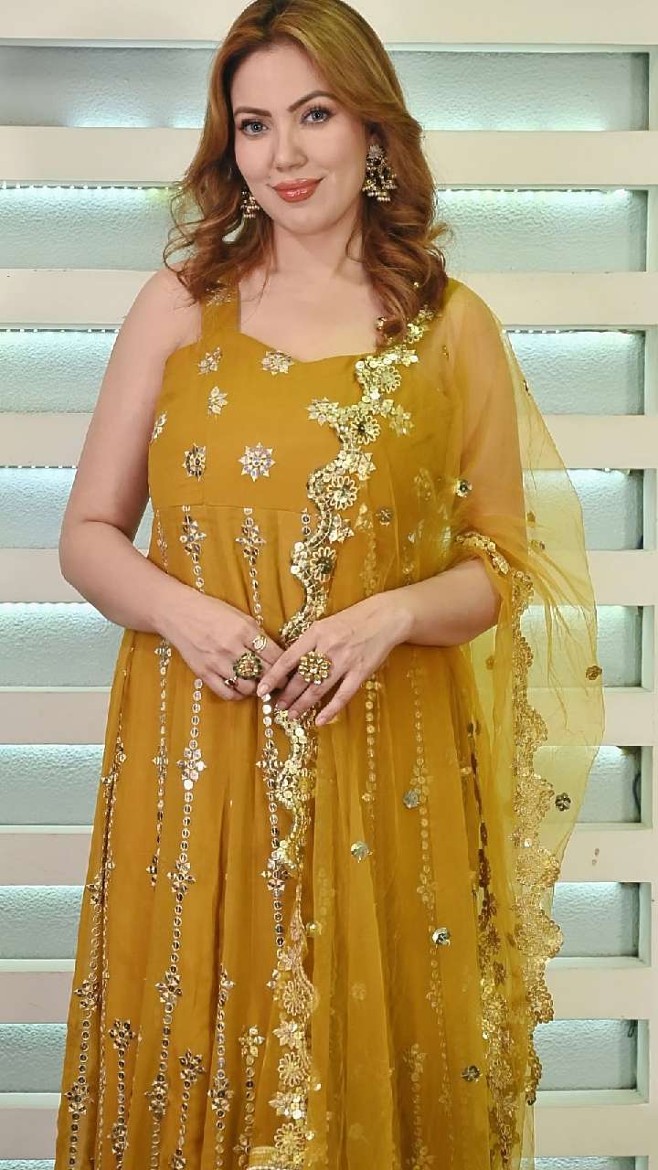 फिलहाल मिरर वर्क आउटफिट्स काफी ज्यादा ट्रेंड में चल रहे हैं। आप भी मुनमुन दत्ता की तरह ही मिरर वर्क लहंगा पहन सकती हैं।