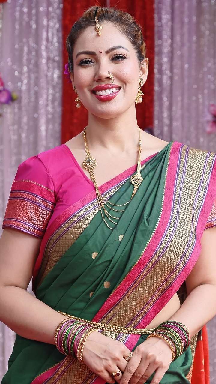 साटन साड़ी में भी मुनमुन दत्ता बहुत प्यारी लग रही हैं। यंग गर्ल्स पर भी मुनमुन दत्ता का ये लुक काफी शानदार लगेगा।