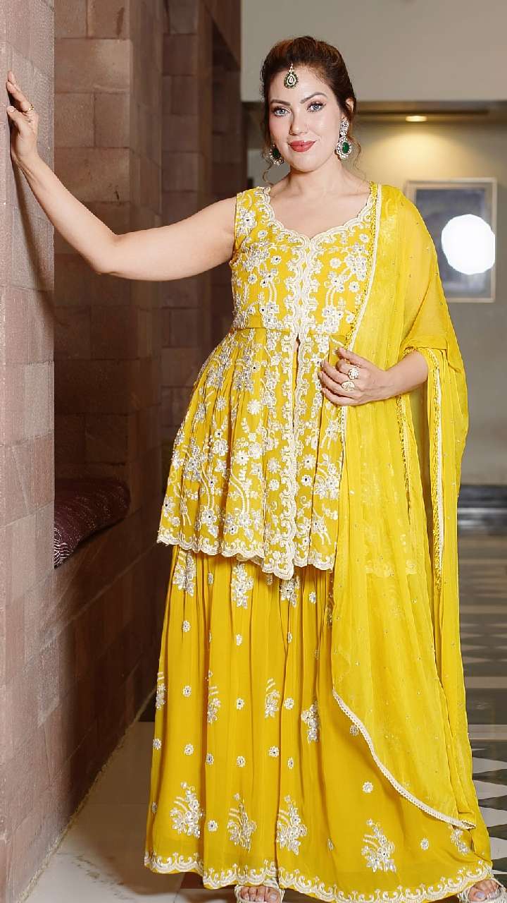 शरारा पैटर्न सूट हर साइज की लड़कियों पर जंचेगा। आप भी खास मौके पर शरारा पैटर्न सूट डिजाइन को स्टाइल कर सकती हैं।