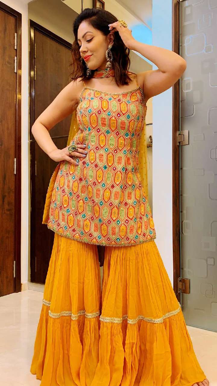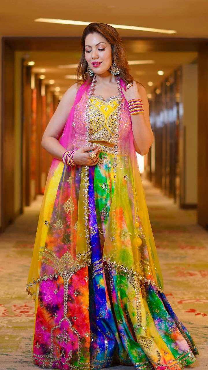 यंग गर्ल्स पर इस तरह का मल्टी कलर लहंगा खूब जंचेंगा। मुनमुन दत्ता की तरह आप भी मल्टी कलर लहंगा कैरी कर सकती हैं।