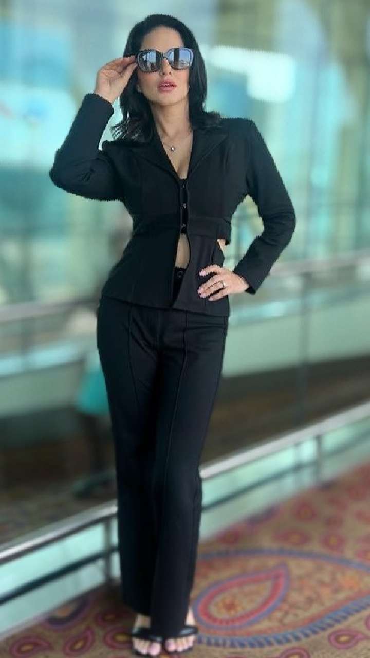 सनी लियोनी का ये ऑल ब्लैक लुक ब्लैक लवर्स के लिए बिल्कुल परफेक्ट है। ये आउटफिट आप ऑफिस में कैरी कर सकती हैं।