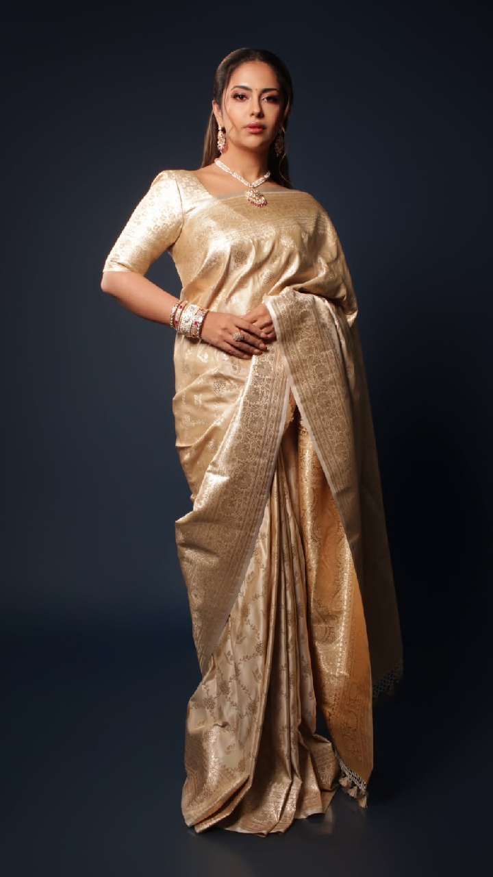 अविका गौर गोल्डन कलर की सिल्क साड़ी में बला की खूबसूरत लग रही हैं। इस तरह की साड़ी हर मौके पर रॉयल लुक देती हैं।