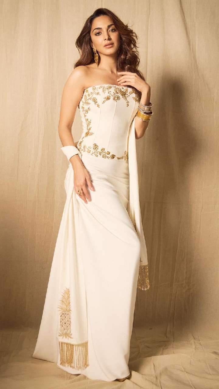Kiara इस व्हाइट कोर्सेट बॉडीकॉन ड्रेस में बेहद खूबसूरत लग रही हैं। यंग गर्ल्स बोल्ड मेकअप और कर्ली हेयर स्टाइल के साथ ड्रेस को कैरी करें।