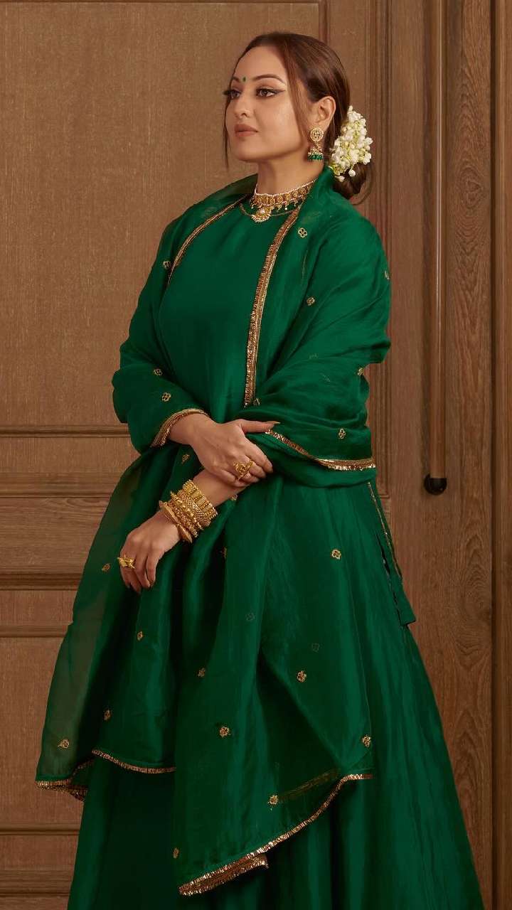 साड़ी हो या फिर लहंगा सोनाक्षी की तरह गजरा बन हेयरस्टाइल ट्राई करें। यह आपको सादगी भरा लुक देता है।