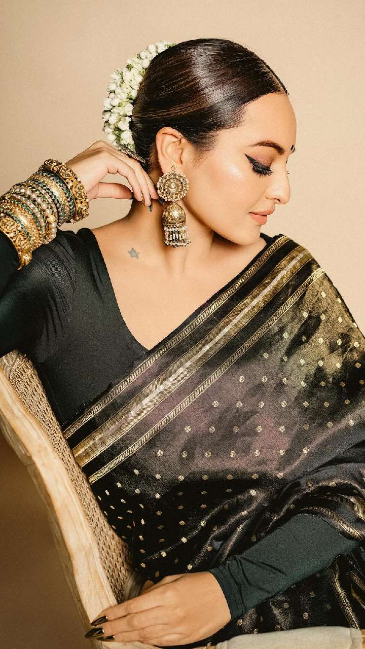 सोनाक्षी सिन्हा का स्टाइल बहुत फैशनेबल है। वह अपने हर ट्रेडिशनल ड्रेस के साथ स्टाइलिश हेयरस्टाइल बनाती हैं।