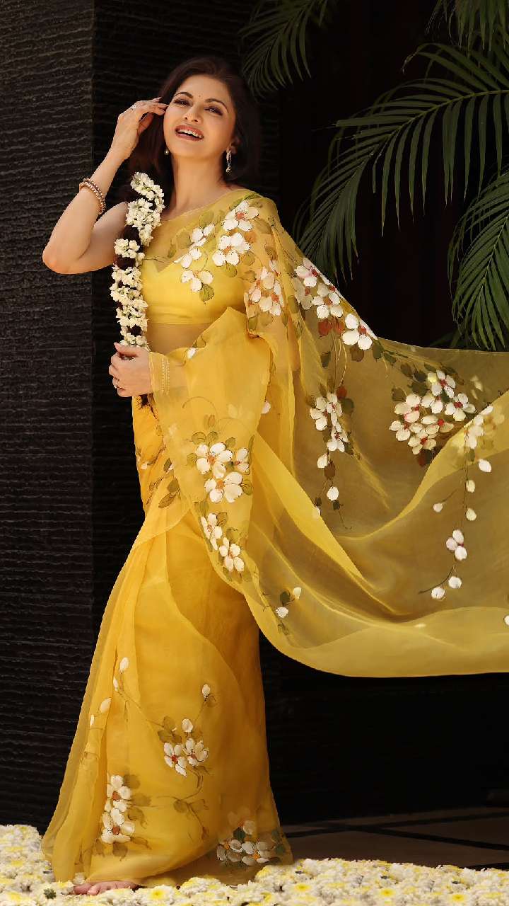 त्योहार पर सादगी भरा और फ्रेश लुक चाहती हैं, तो ऐसी फ्लावर प्रिंट साड़ी को पहनकर गॉर्जियस लग सकती हैं। इसके साथ गजरा भी लगा सकती हैं।