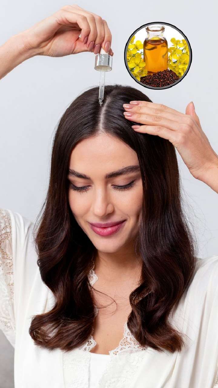 सरसों का तेल लगाने से बालों में नेचुरल चमक आने लगती है। इसके अलावा, बाल लंबे और मजबूत होने लगते हैं। इसे रोजाना बालों में लगा सकते हैं।