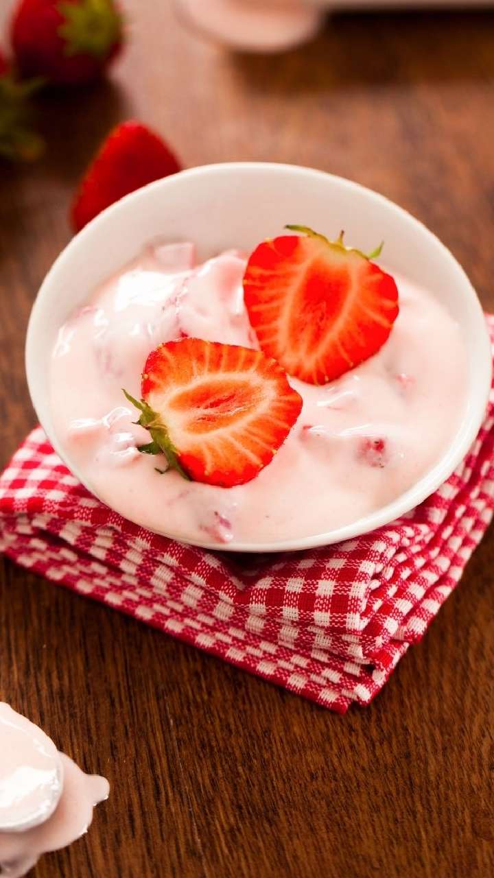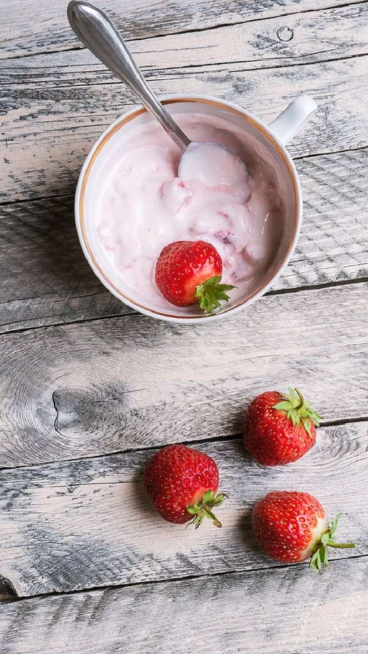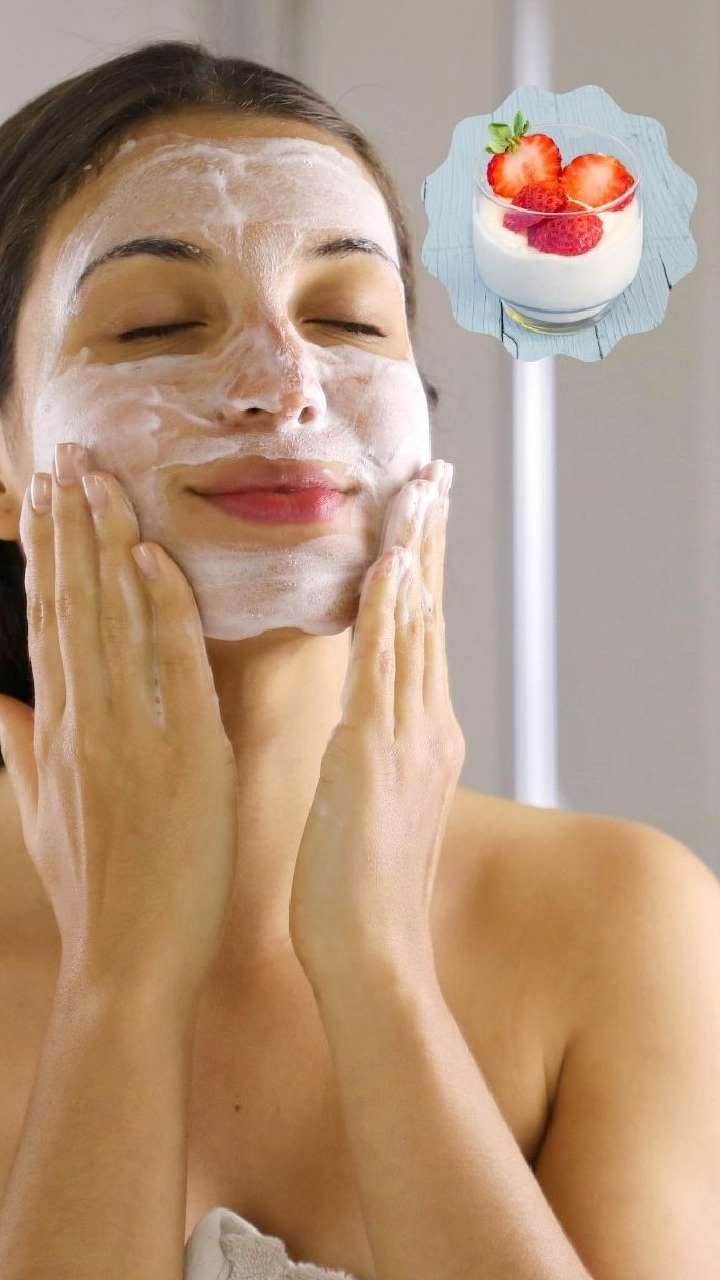 स्ट्रॉबेरी में मौजूद विटामिन C स्किन को ब्राइट बनाता है, जबकि दही स्किन को सॉफ्ट और स्मूद करती है।