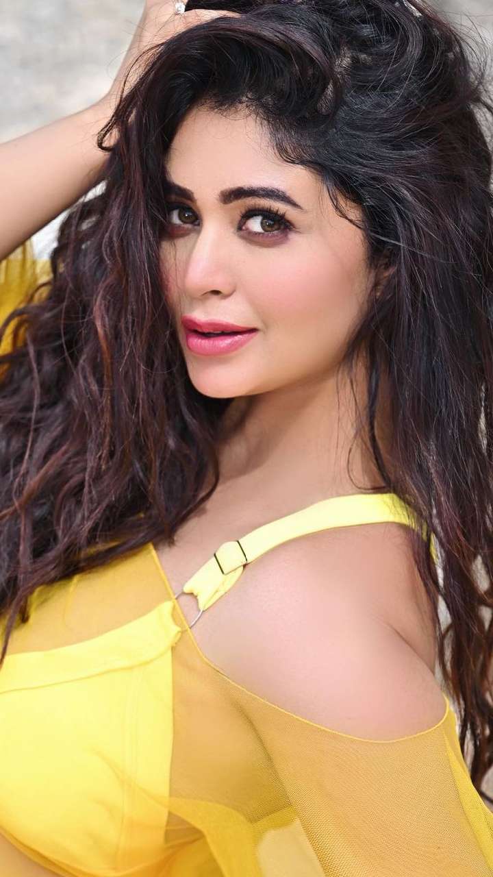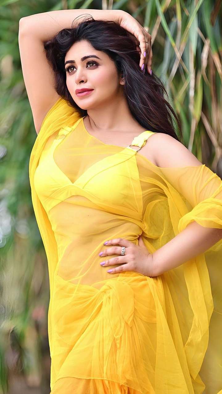 तस्वीर में रिताभरी ने येलो कलर की ट्रांसपेरेंट साड़ी और ब्रालेट पहना हुआ हैं। ग्लॉसी लिपस्टिक लगाए और ओपन हेयर स्टाइल रखें बेहद खूबसूरत लग रही हैं।