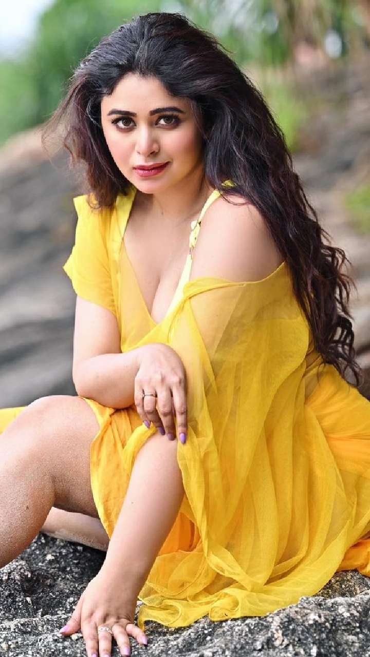 बंगाली एक्ट्रेस येलो साड़ी में चट्टान पर बैठ पोज देते हुए बोल्डनेस की तमाम हदों को पार करती नजर आ रही हैं।